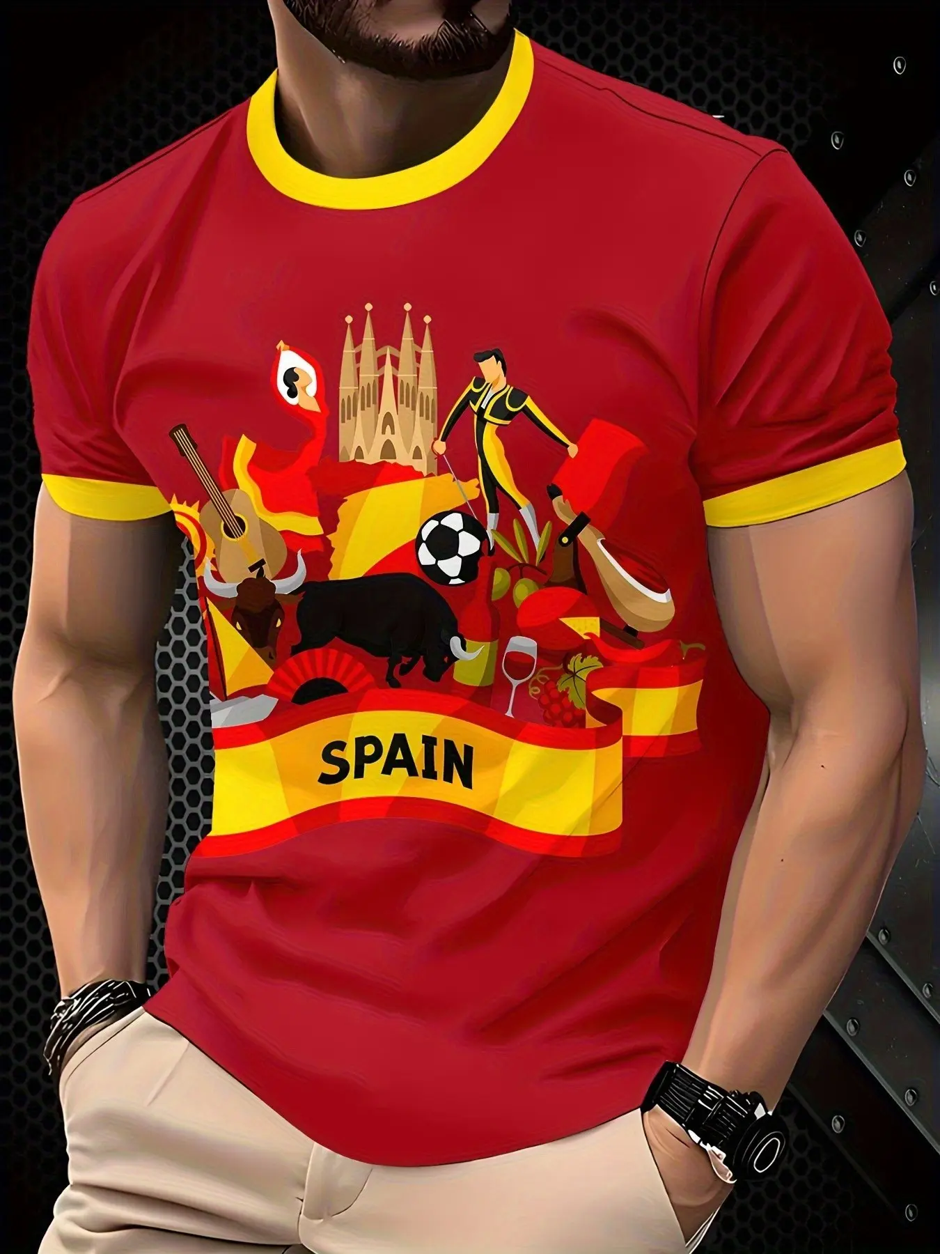Men's Moroccan Soccer Jersey, Round Neck, Breathable Polyester Sport T-Shirt, Geometric Pattern, Slim Fit, Ideal for Casual and Outdoor Activities