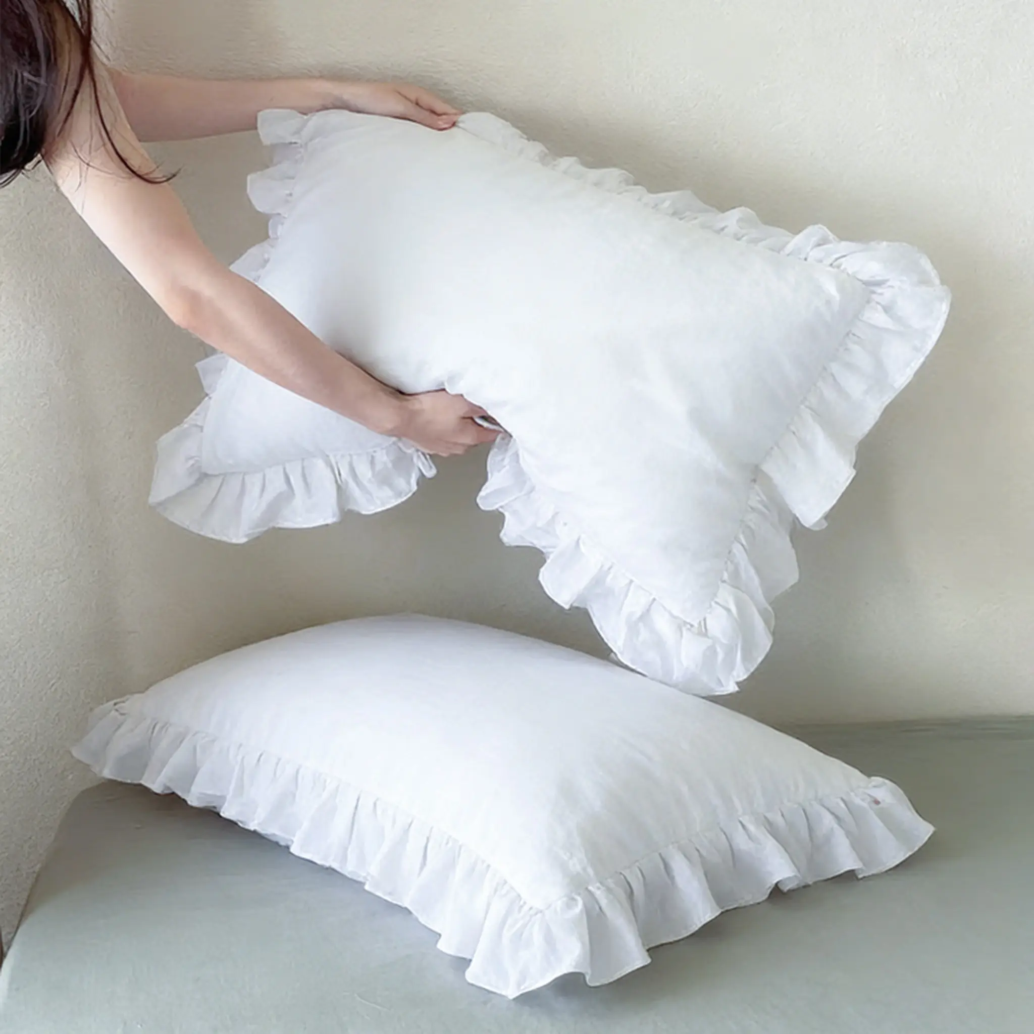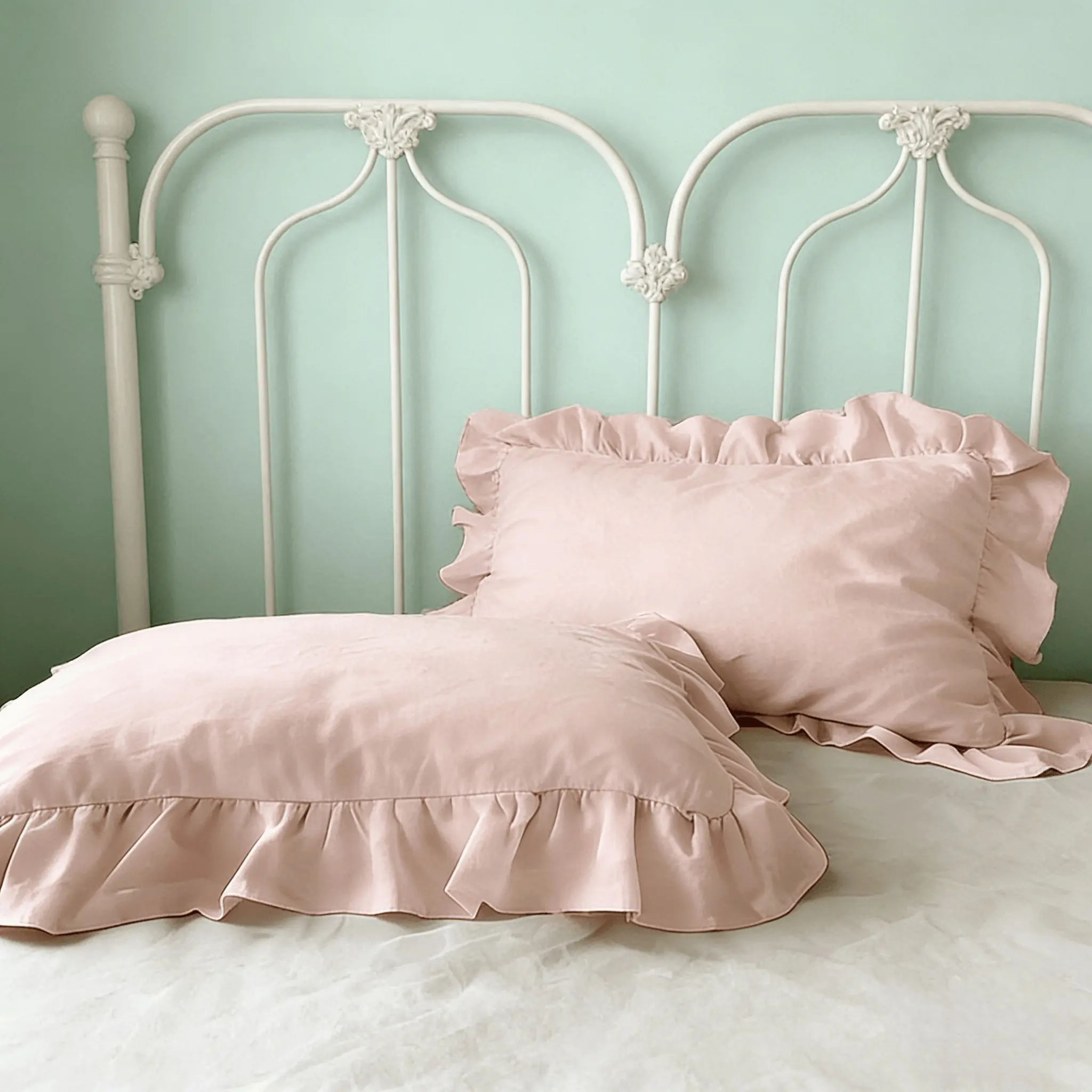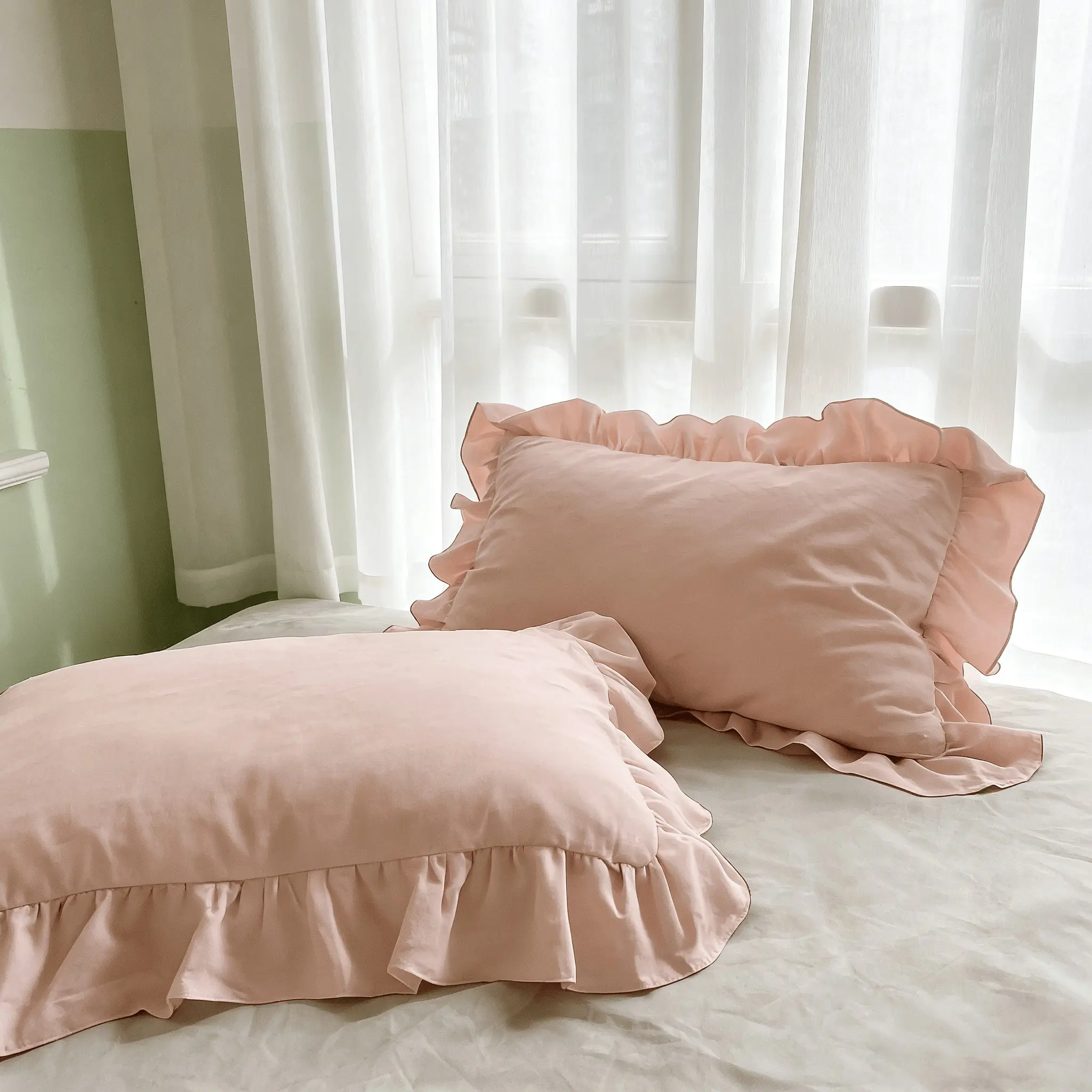 2pc Vintage Ruffle Flower Pillowcases, Pure Color Style, No Filling, Suitable for Bedroom Decor, Sofa Cushion, Bed Pillowcases Decoration