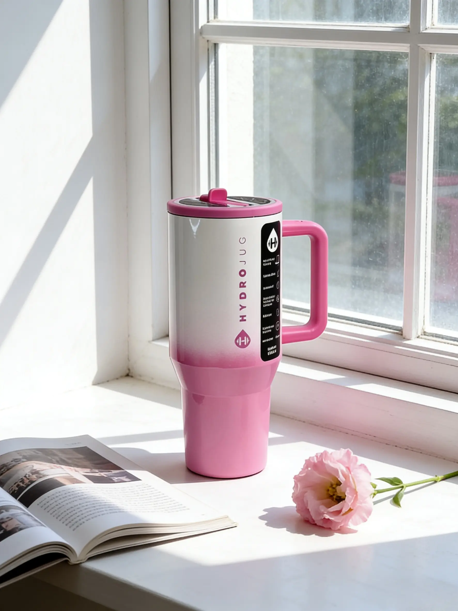 Stay hydrated on the go with the HydroJug 32oz Cute Pink Ombre Tumbler. This insulated stainless steel cup features a leakproof lid, ensuring your drinks stay fresh. Perfect for on-the-go hydration, it combines functionality with a trendy aesthetic. The handle adds convenience, making it easy to carry. Ideal for flasks, mugs, bottles, and bottled water.
