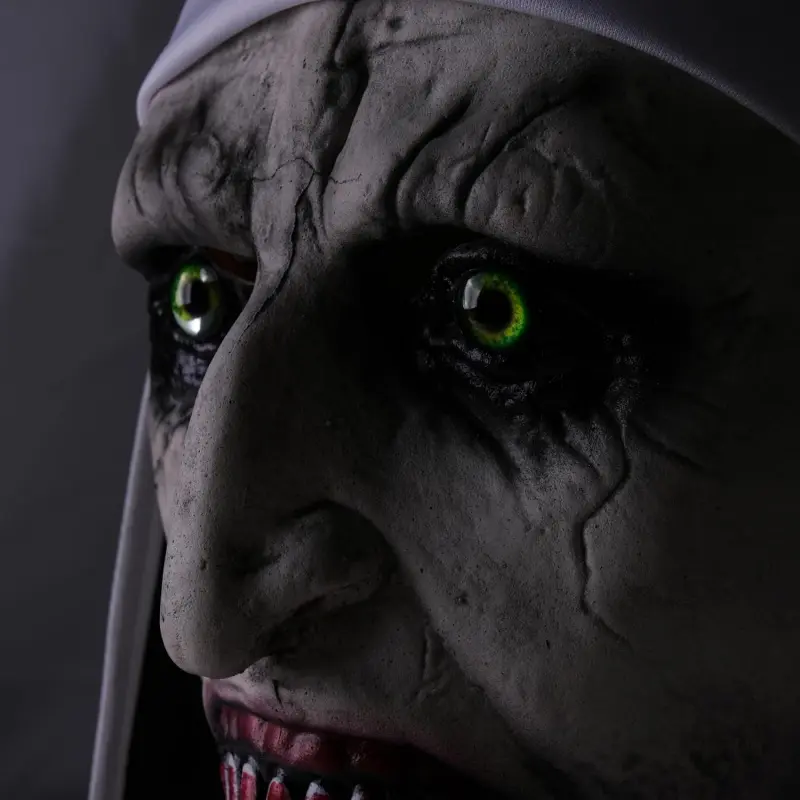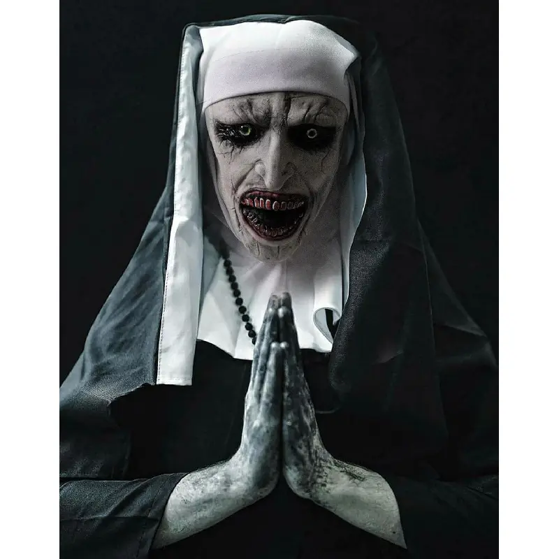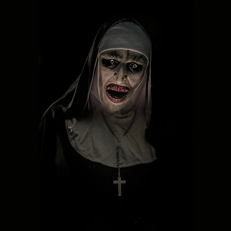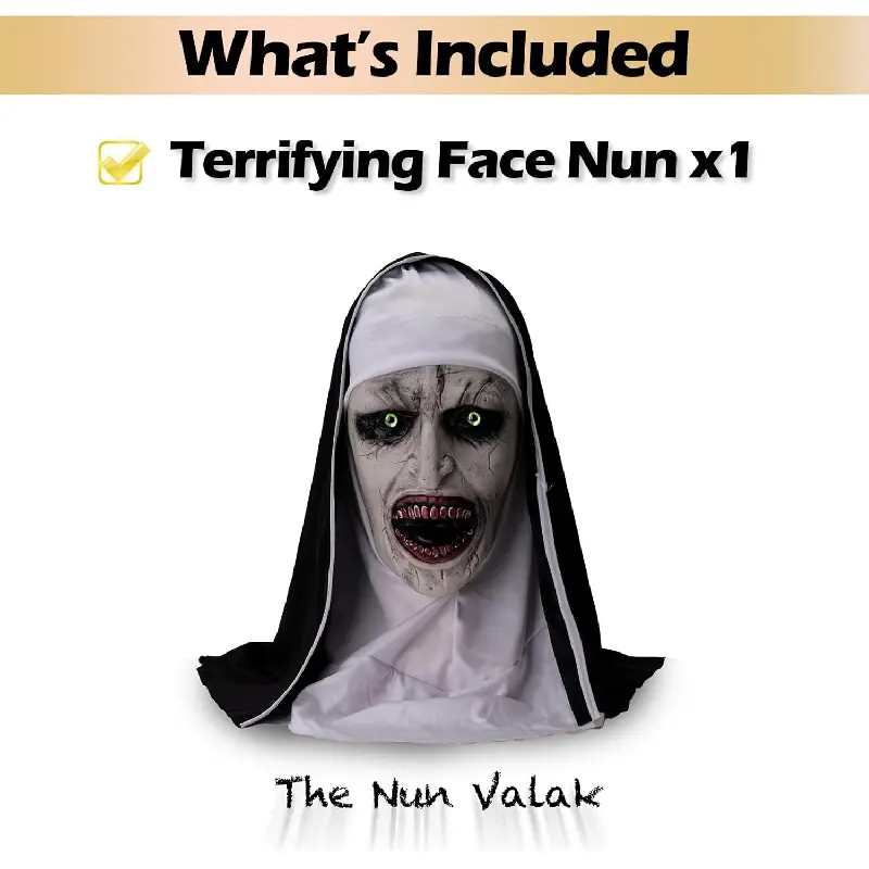 [Scariest Nun Mask]it’s inspired by Nun halloween 2024 new design, Are you ready to scare everyone with this Nun Halloween Scary Mask at your Halloween horror party?With the Halloween Scary Mask, you'll be a real eye-catcher![Easy to Use]Just put Our Nun Halloween Scary Mask on , Imagine walking into the room wearing this mask and all the guests freezing in terror.Your spooky appearance is guaranteed to give them goosebumps and make the party unforgettable.[Adults & Teens]Nun Mask comes in one size with elastic scraf which fits almost any head.[Full Head Nun Mask with scraf]Our Nun Halloween Scary Mask is made of latex and fits perfectly on any head thanks to the one-size-fits-all design.The elastic scarf ensures a secure hold while wearing it.[Light and Comfy Design]It is made of Latex and is decorated with artificial hair, which makes it look particularly realistic.The detailed workmanship and hand-painted surface make this mask an absolute highlight.