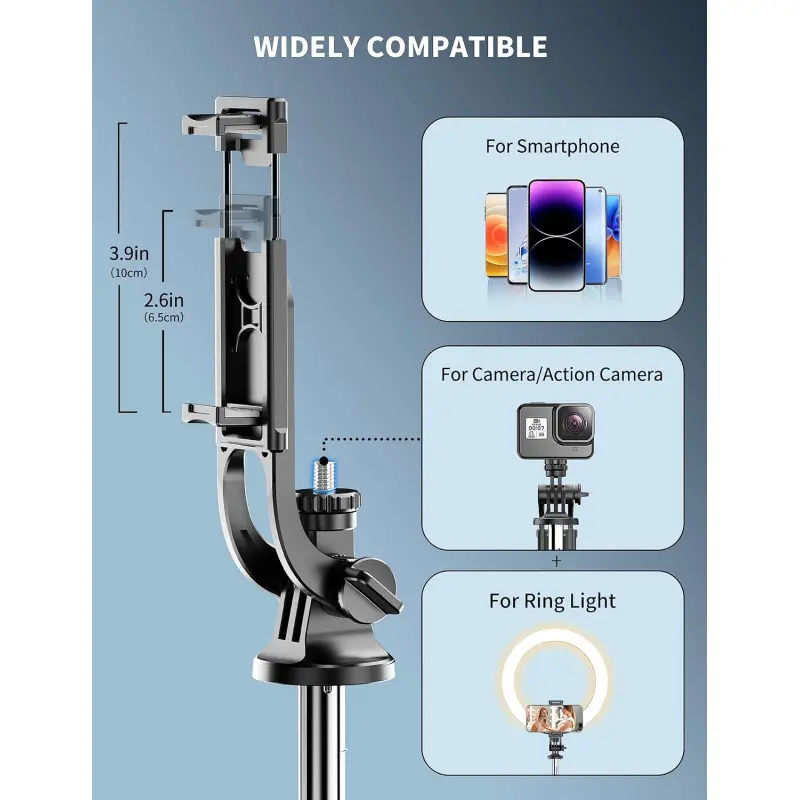 ✅[Extra Tall 71" Adjustable Tripod]: With 8-section adjustable telescopic poles, the phone selfie stick tripod stand is tall enough, can be adjusted from 13.11in(33.3cm) to 70.86in(180cm).Therefore, this selfie stick for iPhone can capture a wider landscape and meet the needs of people who want to have different shoot heights and apply it in different scenes, even for the tall man.Suitable for selfies, vlog, live streaming, group photos and more.