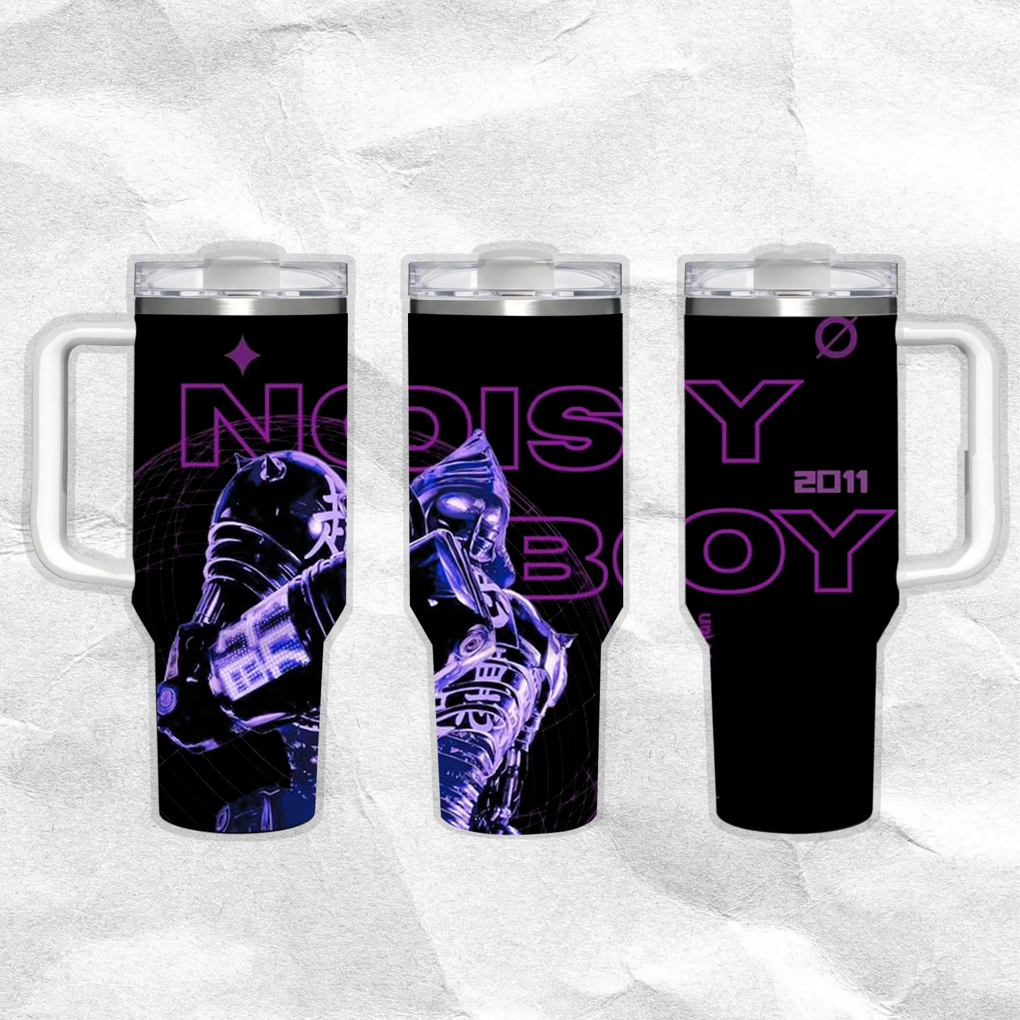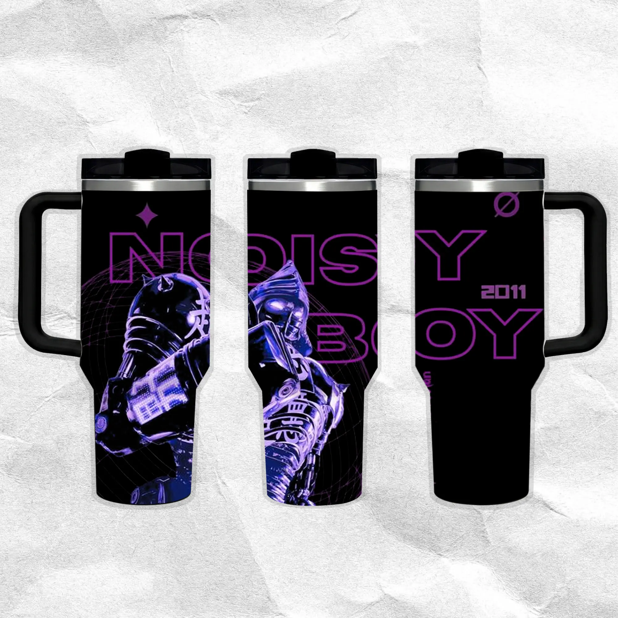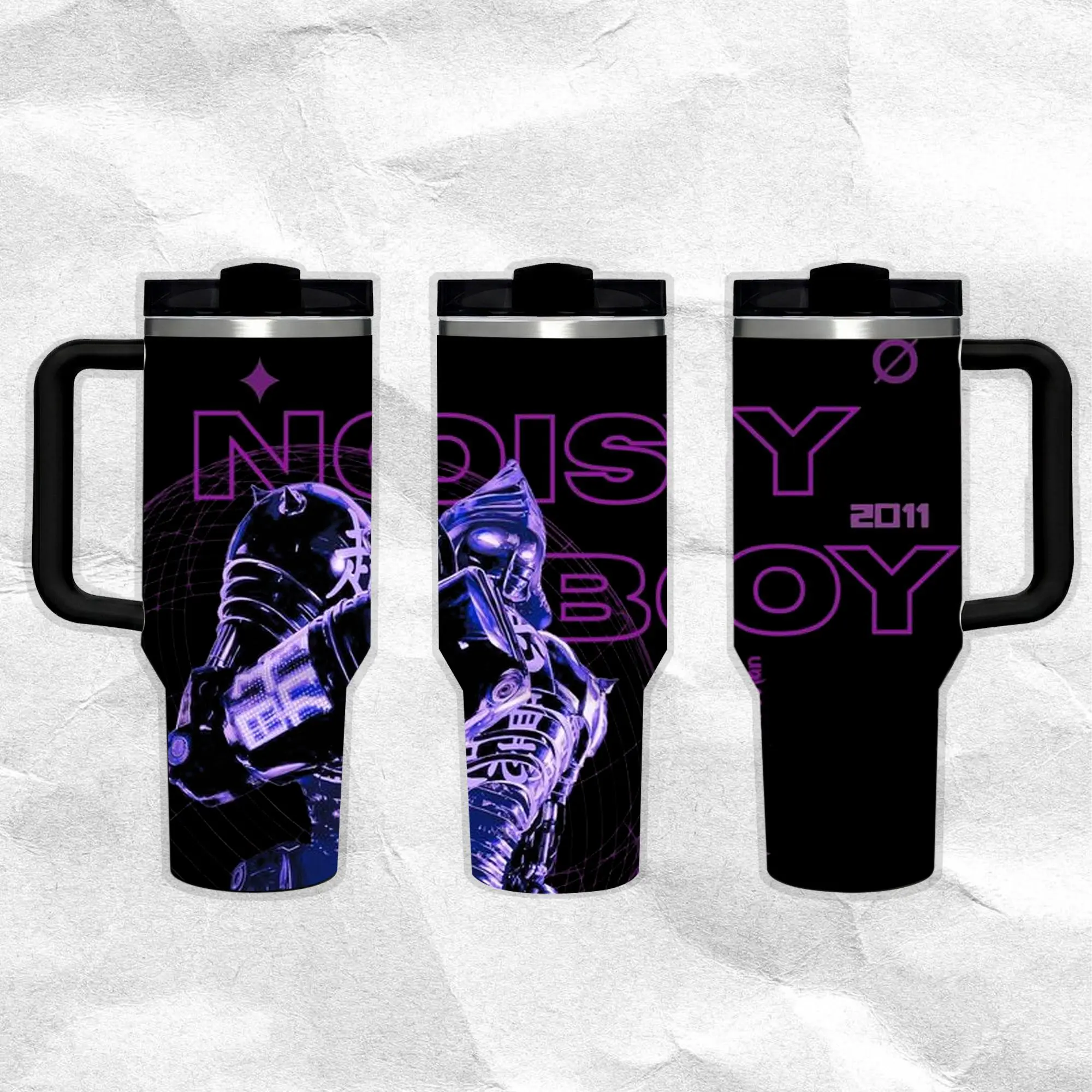 Noisy Boy - Real Steel Water Bottle Stainless Steel Thermos Keeps Drinks Hot Cold 24H Portable Travel Mug Gothic Minimal Design Gift for Him Her