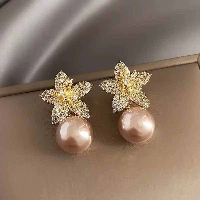 Light Luxury Petal Pearl Stud Earrings for Women, Niche Design, Elegant High-End Floral Earrings Jewelry