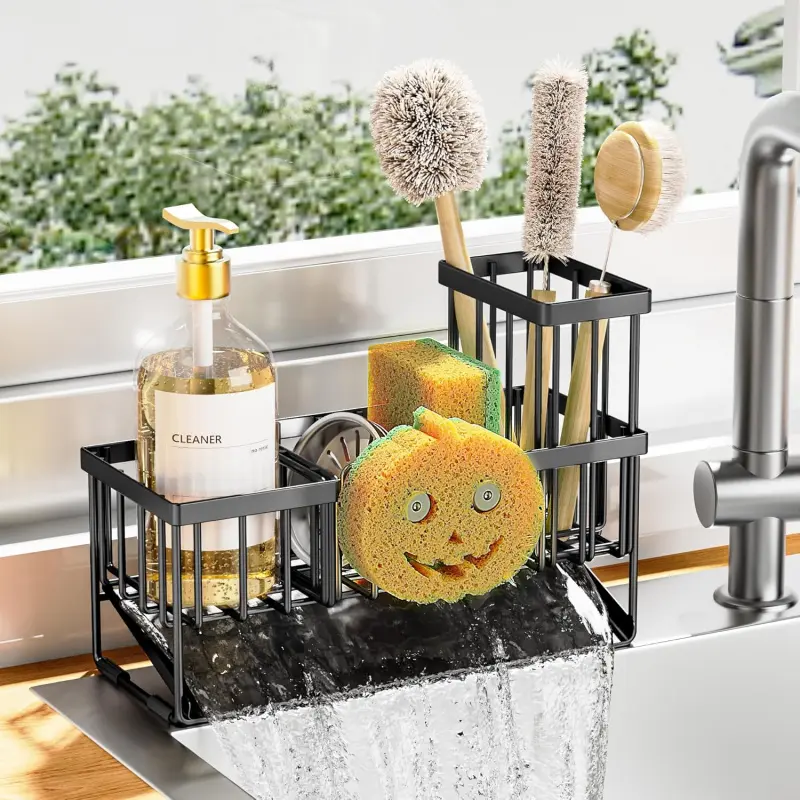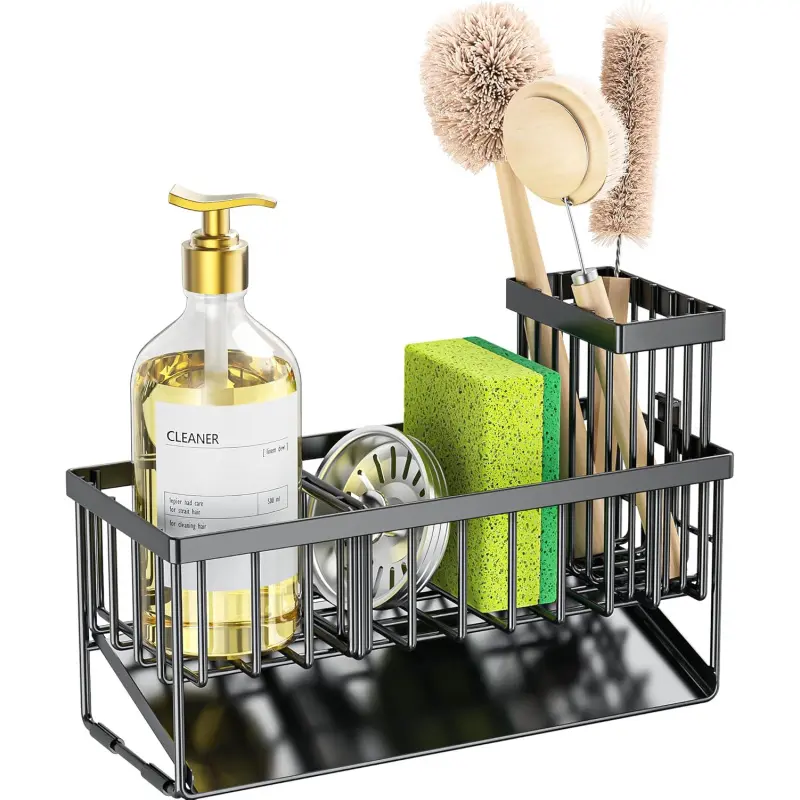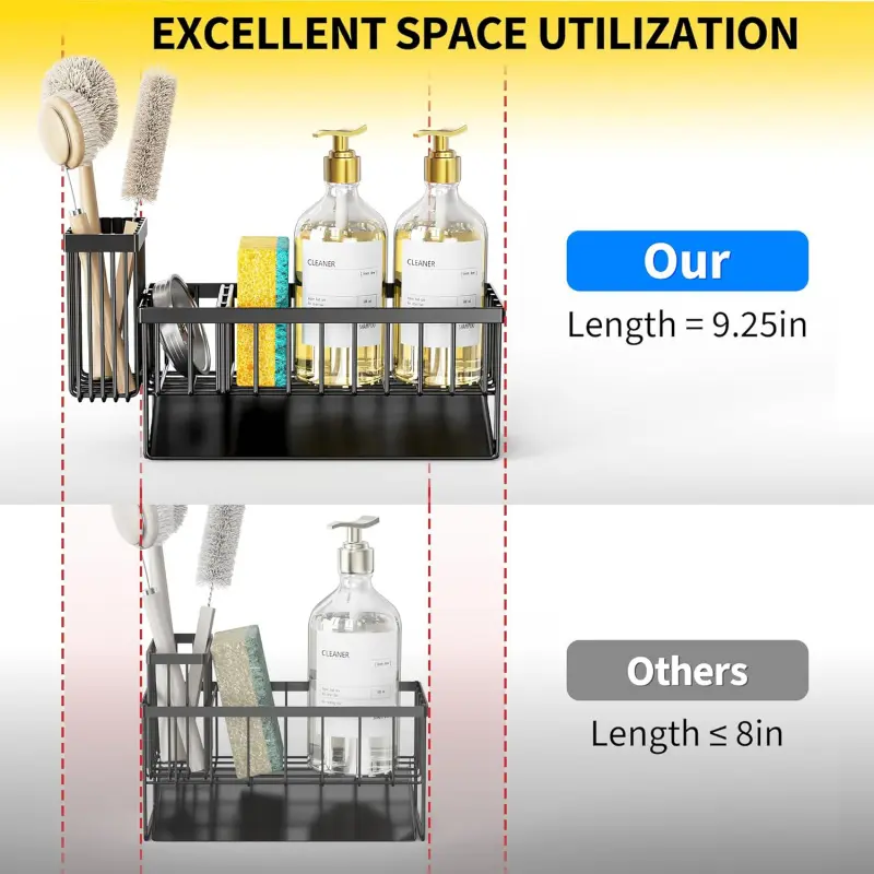 Sink Caddy Sponge Holder for Kitchen with Brush Holder and Stainless Steel Self Drain Tray, Rustproof Kitchen Sink Organizer for Sponge, Soap Dispenser Storage Accessories