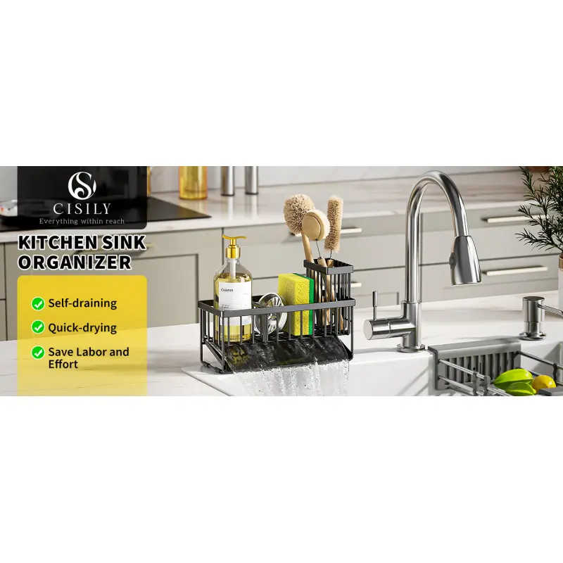 304 Stainless SteelQuality Control[AUTOMATIC DRAINAGE SYSTEM]Cisily adopts slope design to achieve drainage effect, aiming at reducing the frequency and time of cleaning the sponge holder, freeing your hands, reducing the burden on your kitchen work, and improving your happiness index. [PREMIUM STURDY MATERIAL] Cisily kitchen sink organizer is made of premium stainless steel which can effectively prevent rust and deformation.And you can clean it easily by rinsing it under a running tap.Take the clutter out of your countertops. [REASONABLE DIVIDER DESIGN] The sponge holder for kitchen sink ergonomic divider design allows it to have 3 separate storage spaces, Different items are placed in different areas.Make the of every inch of space and make your kitchen look cleaner. [SATISFACTION GUARANTEED]The CISILY kitchen sink organizer is ready to use upon receipt, no installation required and is widely used on counters or bathrooms, making it a satisfying gift. If you have any questions during use, please consult our customer service staff. We want to provide you with a pleasant shopping experience. US Patent Number::1038566S