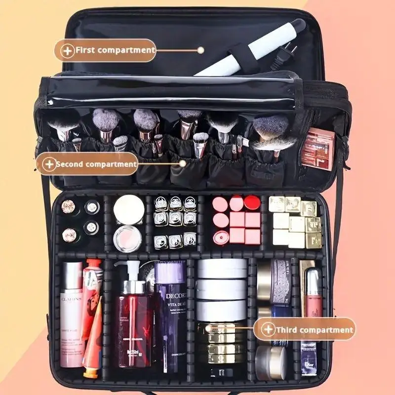 Professional Makeup Bag for Travel – Spacious Cosmetic Case with Custom Compartments