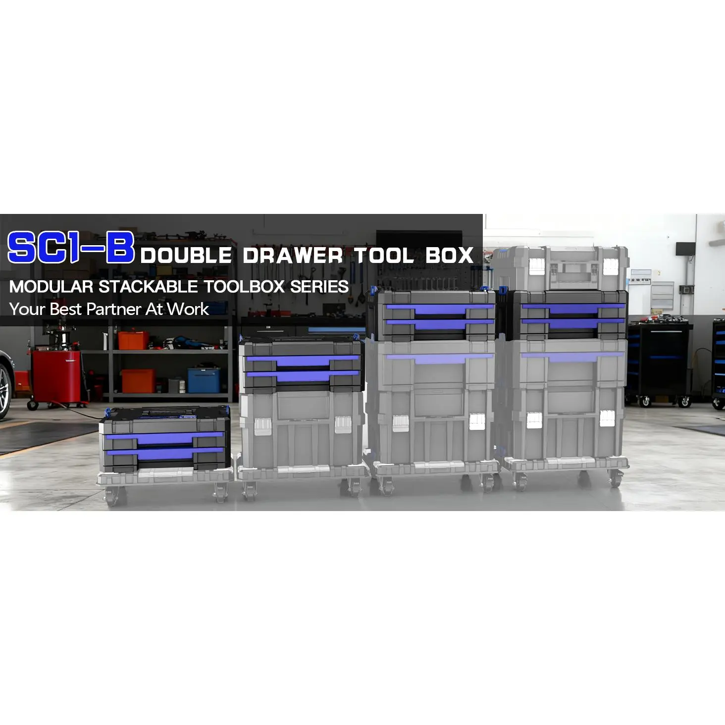 Modular Stackable Tool Box Series - By AIRAJSC1-B: Double-layer tool box with drawers with partition units.Each drawer of the toolbox has removable dividers, which can divide each drawer into 9 small spaces to store different types of parts.Sturdy and Durable - High Load-Bearing: The tool box set is made of high-quality PP material, with toughening agent added (Not brittle, not cracked, and tough), pressure-resistant and anti-fall, strong load-bearing capacity, and is durable.Widely Applicable - Garage Storage: Tool organizer suitable for various places such as homes, garages, workshops, etc., it is an ideal choice for DIY enthusiasts and professional maintenance personnel.Note: Compatible products are continuously being developed for this product series, and more products will be launched in the future.