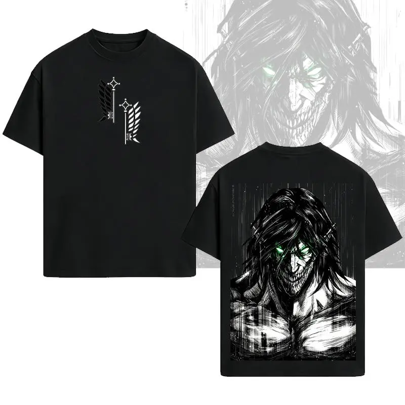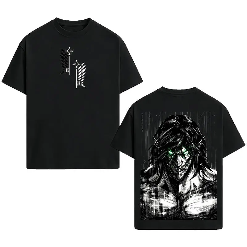 Valentine Shirts Retro Heavy X Attack On Titan Ver Double Printed Men'S Vintage Tee Washed Unisex Oversize Anime Manga Washed Heavyweight Cotton T-Shirt, Anime Gift For Him