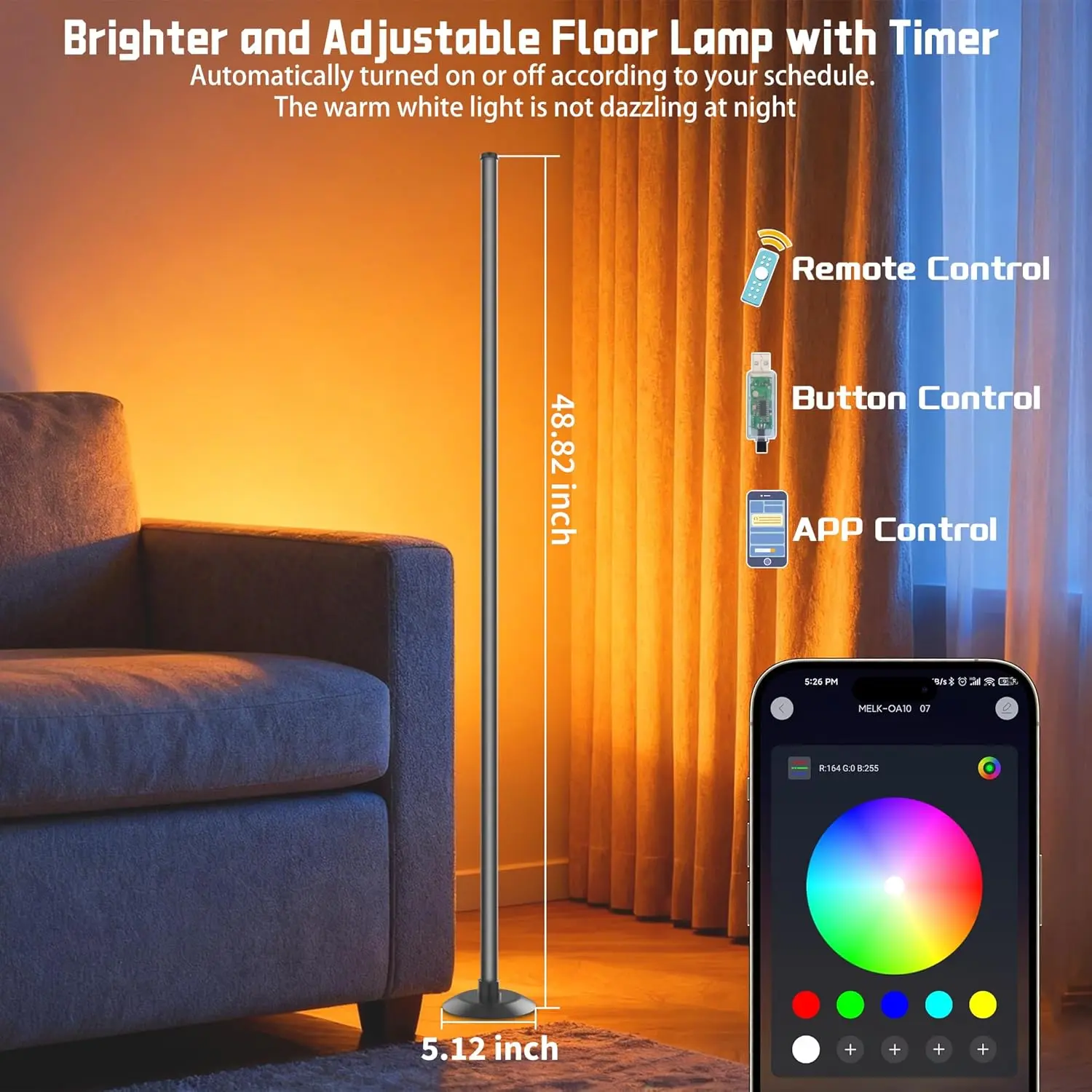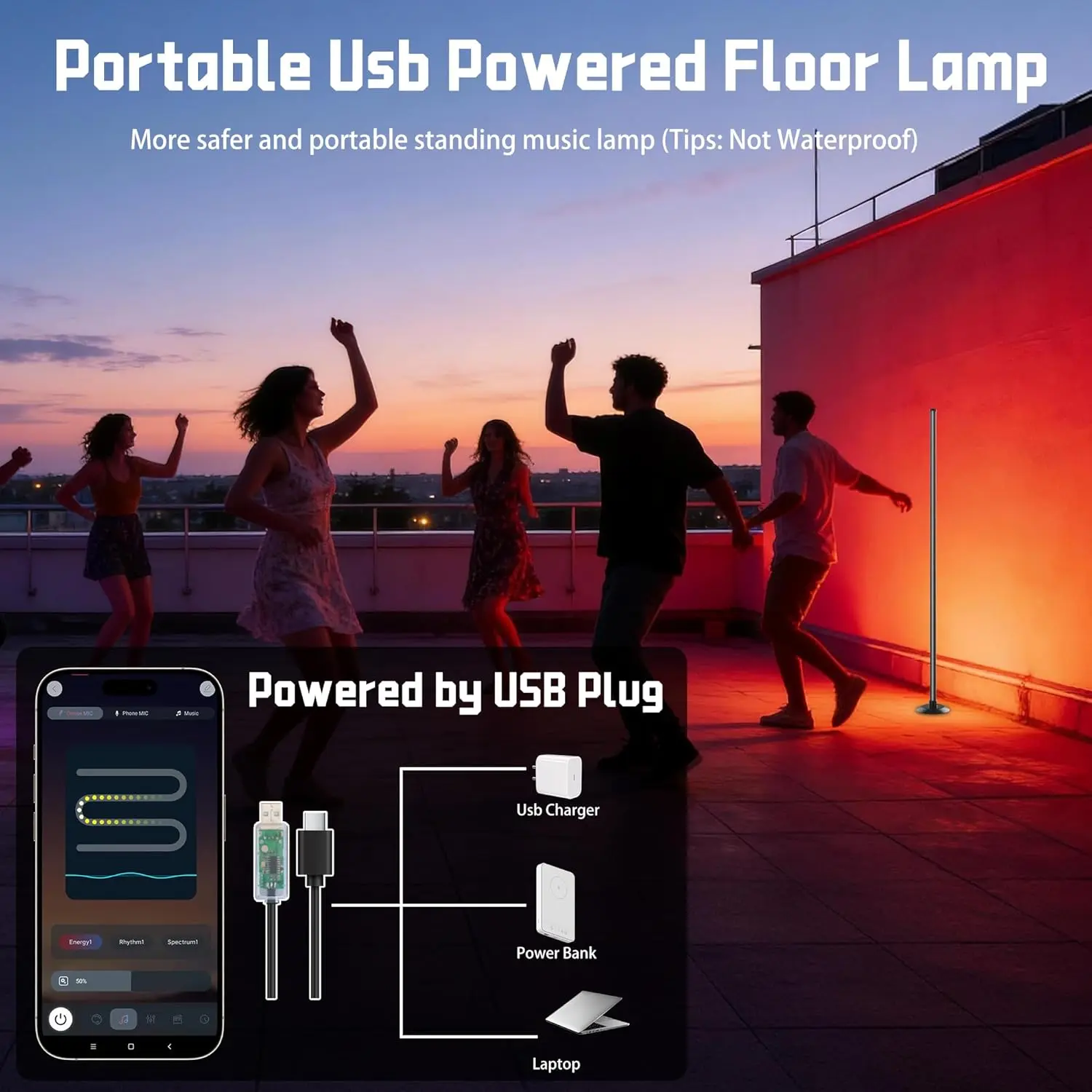 ·USB Powered Floor Lamp: Our rgb floor lamps is USB-powered, which makes it safer and more stable. Living room lamp can be powered by a power bank or a laptop and is easy to carry, making it ideal for outdoor use in places like courtyards or when camping. (Tips: The lamp is not waterproof.)