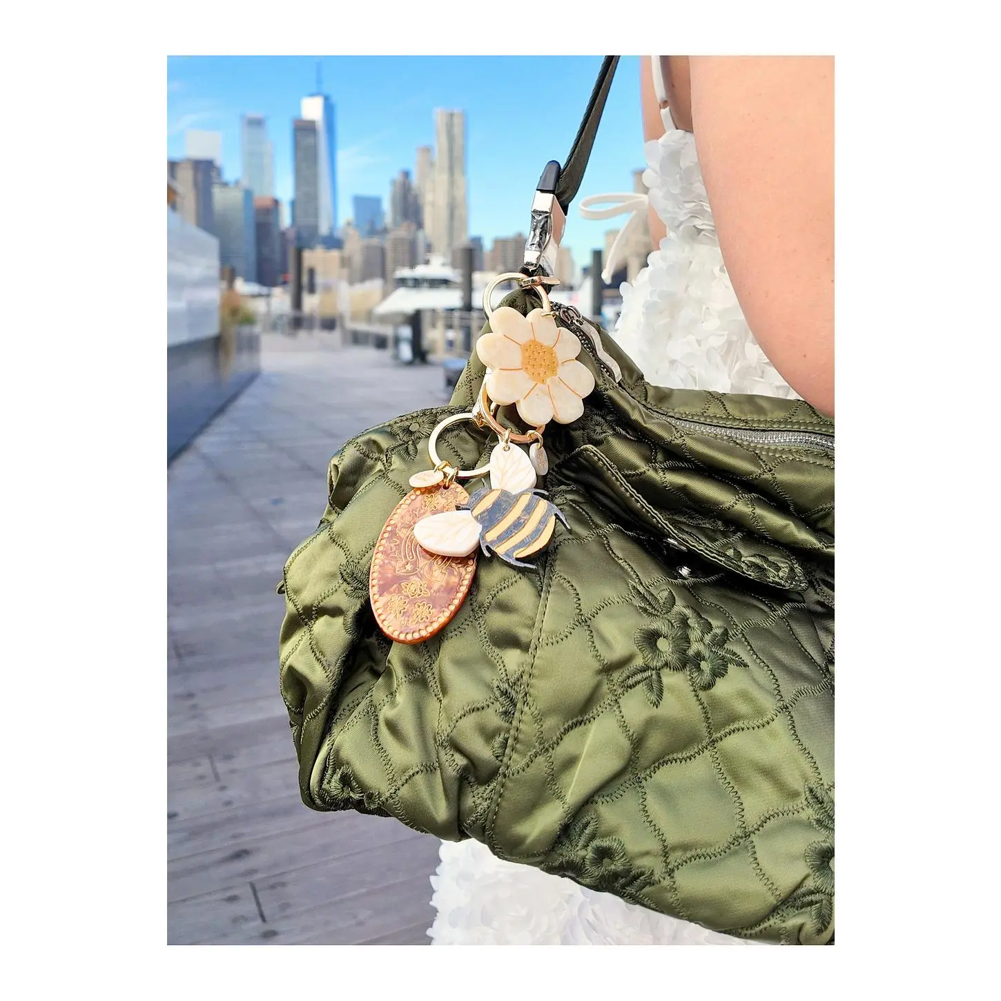 ·Crafted with super-strong biodegradable acetate, this versatile pieces can be used as a bag charm or a statement keychain.