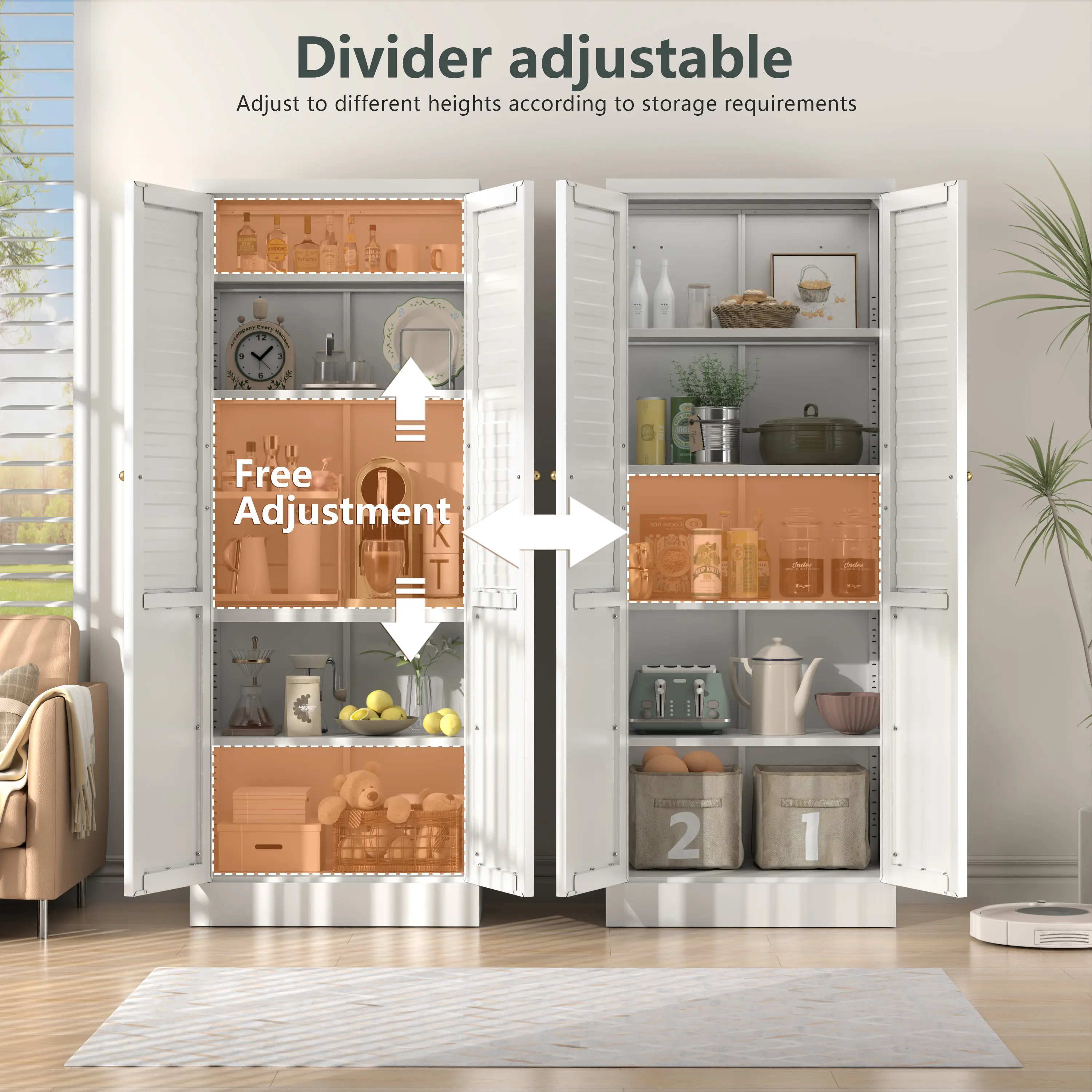 【Product Description】 Product Name: Multi-Purpose Metal Storage Cabinet | Kitchen Pantry Cabinet with Doors | Adjustable Shelving Unit Available Sizes: 61 inches / 71 inches Available Colors: White / Beige / Green Create More Storage Space for Your Home Whether your kitchen, living room, or laundry room needs extra storage, this metal cabinet is the perfect solution. Made from high-quality cold-rolled steel with a durable construction and adjustable shelves, it easily handles all your daily organization needs. Key Features 【Spacious Storage Design】 61-inch model features 4 adjustable shelves; 71-inch model features 5 adjustable shelves Each shelf supports up to 180 lbs—perfect for canned goods, cookware, small appliances, and cleaning supplies Deep interior easily accommodates bulk food items, microwaves, or air fryers 【Quality Metal Construction】 Made from heavy-duty cold-rolled steel with a one-piece frame for lasting durability Electrostatic powder-coated finish resists rust, scratches, and corrosion Smooth surface wipes clean easily with a damp cloth 【Safety & Stability】 Includes anti-tip hardware for wall mounting—essential for homes with children Adjustable leveling feet keep cabinet stable on uneven floors Strong magnetic door catches ensure doors close quietly and stay securely shut 【Flexible Storage Options】 All shelves are fully adjustable or removable Customize shelf heights to fit everything from spice jars to stand mixers, books to tool boxes 71-inch model maximizes vertical space—ideal for small apartments or rooms with high ceilings 【Stylish Design for Any Room】 Three soft color options: Classic White, Warm Beige, Natural Green Clean lines and modern style blend seamlessly into kitchens, dining rooms, living rooms, bedrooms, laundry rooms, and offices Gold-tone handles add a touch of elegance 【Easy Assembly】 Modular design with clearly labeled parts Includes illustrated instructions and online video guide Two people can complete assembly in 30-60 minutes Versatile for Multiple Uses ️ Kitchen Pantry – Store canned goods, spices, cookware, small appliances ️ Dining Room Sideboard – Organize dishes, glassware, linens ️ Living Room Cabinet – Display books, decor, media equipment ️ Bedroom Wardrobe – Fold clothes, bedding, handbags ️ Laundry Room Organizer – Hold detergents, towels, ironing supplies ️ Office File Cabinet – Store documents, office supplies, equipment ️ Garage Tool Cabinet – Organize tools, auto supplies, gardening equipment Specifications Model | 61-Inch | 71-Inch Product Dimensions | 61"H x 28"W x 14"D | 71"H x 32"W x 16"D Number of Shelves | 4 adjustable | 5 adjustable Weight Capacity per Shelf | 180 lbs | 180 lbs Material | Cold-rolled steel | Cold-rolled steel Finish | Powder-coated | Powder-coated Doors | 2 | 2 Anti-Tip Hardware | Included | Included Adjustable Feet | | Package Includes Metal cabinet panels × 1 set Adjustable shelves × 4 or 5 Cabinet doors × 2 Gold-tone handles × 2 Hardware kit × 1 Anti-tip wall mounting kit × 1 Detailed instruction manual × 1 Important Notes For safety, secure cabinet to wall—especially in homes with children or pets Check all parts before assembly and follow instructions carefully Slight size variations (up to 1 cm) may occur due to manual measurements Actual color may vary slightly from screen images Choose a Storage Cabinet That Works as Hard as You Do Whether you need a kitchen pantry cabinet or a clean storage solution for your living room, this metal cabinet delivers. Pick your favorite color and size—and get your space organized today. Click "Add to Cart" and start enjoying a clutter-free home!