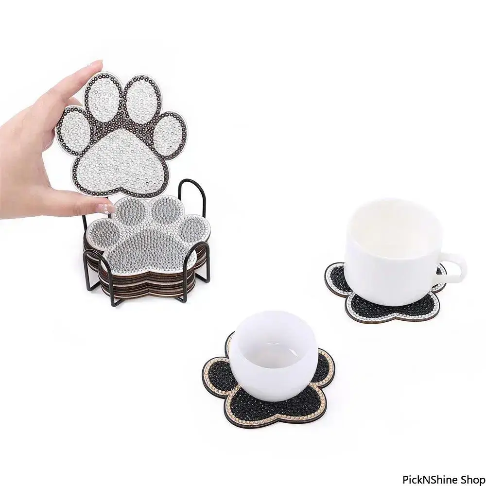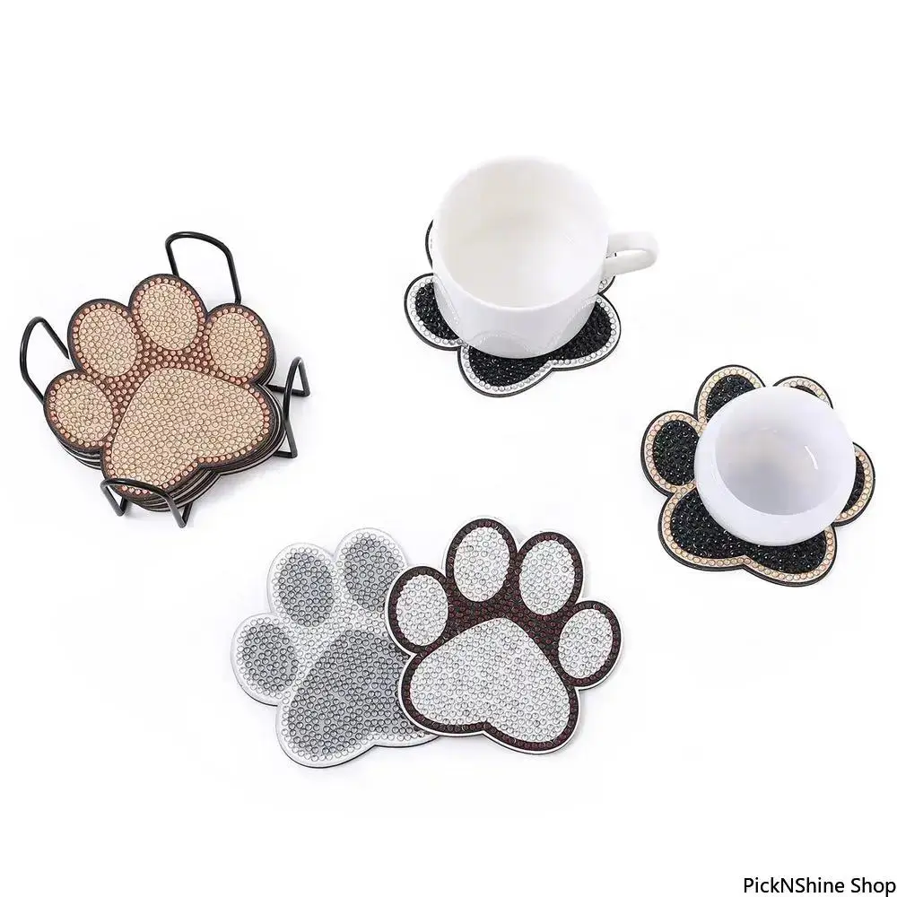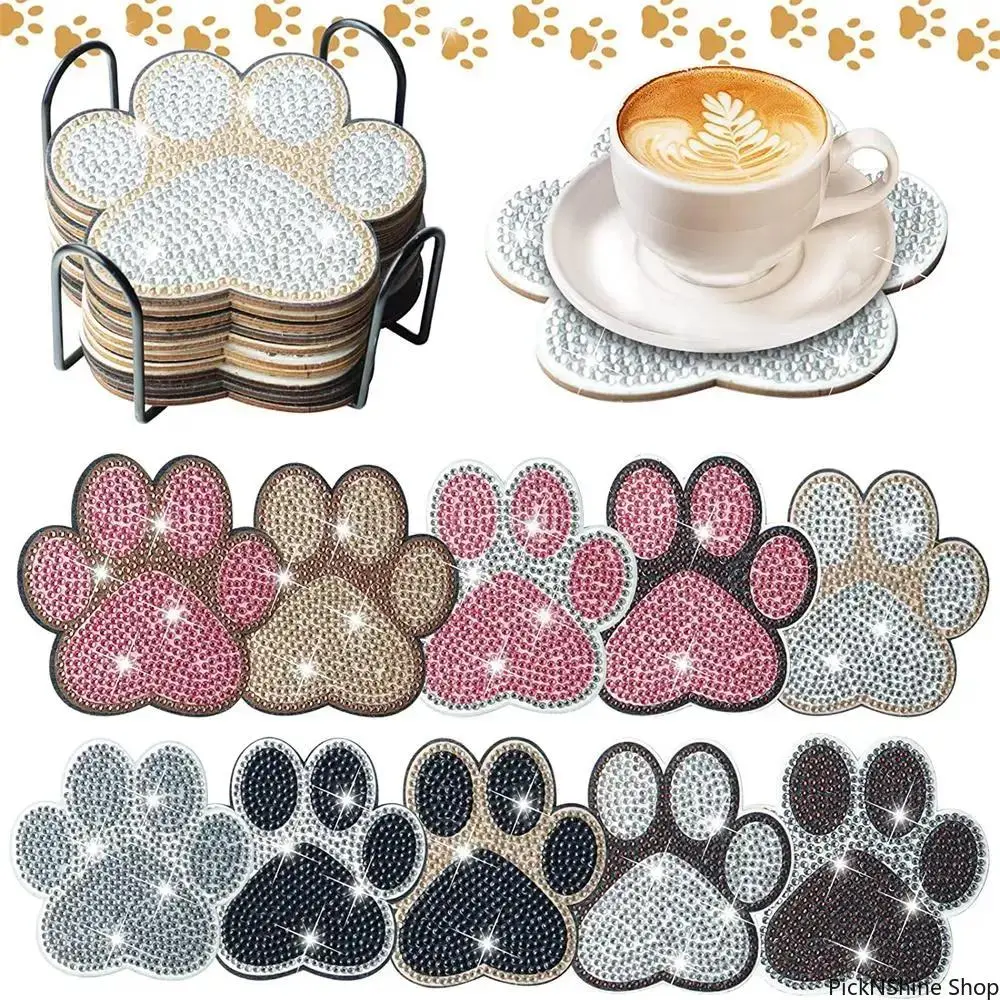 10 Irregular Dog Claw Patterned Artificial Diamond Painting Coasters With Stand, Diy Crystal Diamond Art Wooden Coasters For Adults, Decorative Table Mats For Office Home Coffee Table, Handmade Crafts And Practical Daily Supplies Gift