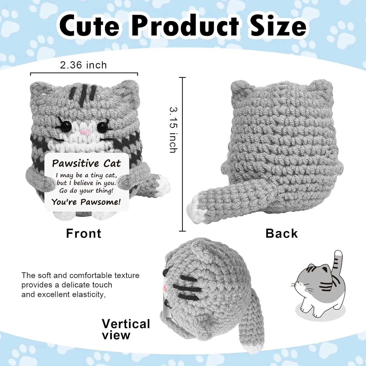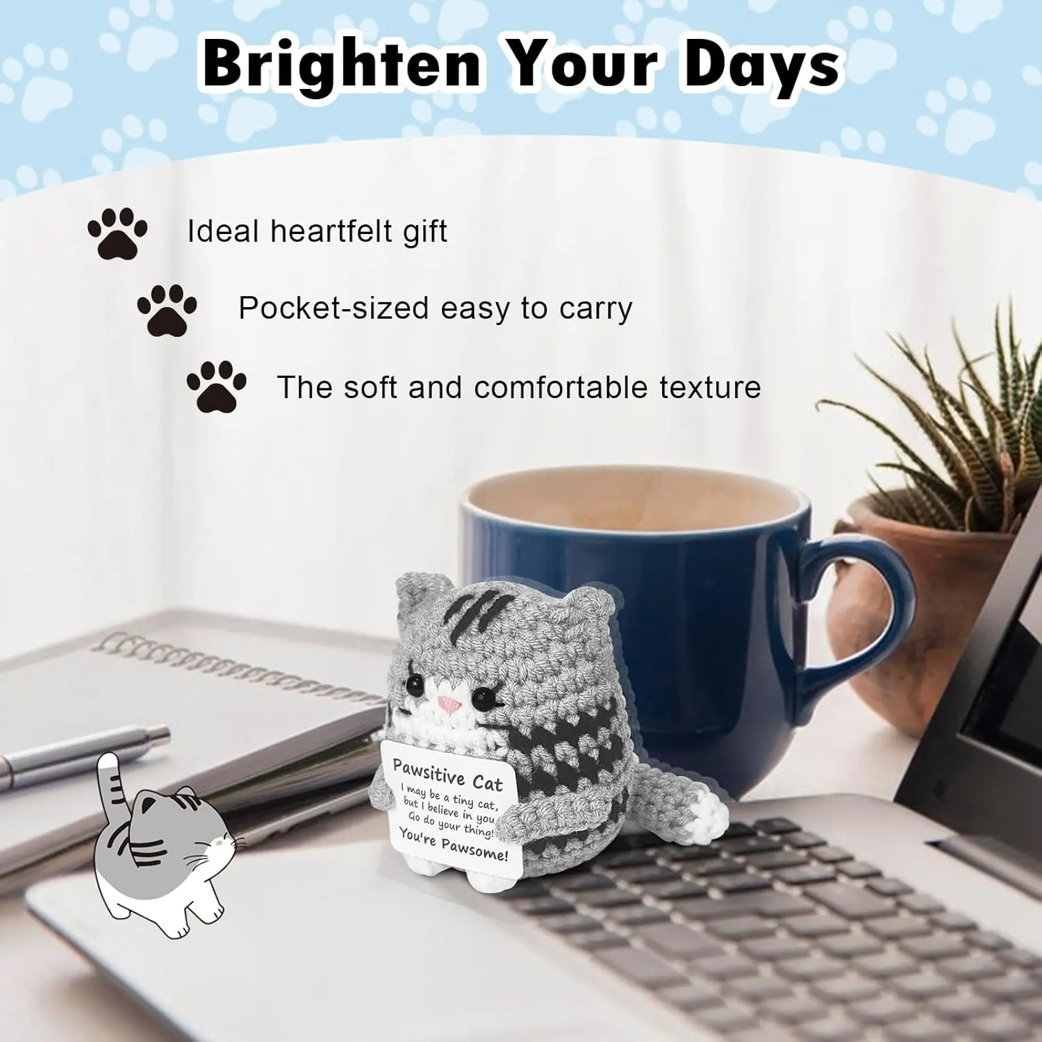Positive Crochet Cat Mini Animal Emotional Cheer Up Support Gifts, Funny Crochet Mini Handmade Cat for Women Men Friends Mom Daughter Son Teen Birthday Mothers Day Decor Graduation Gifts