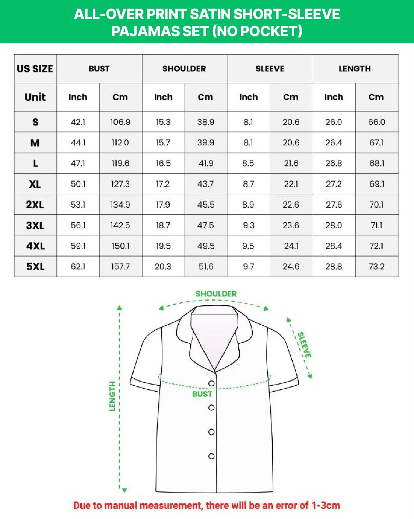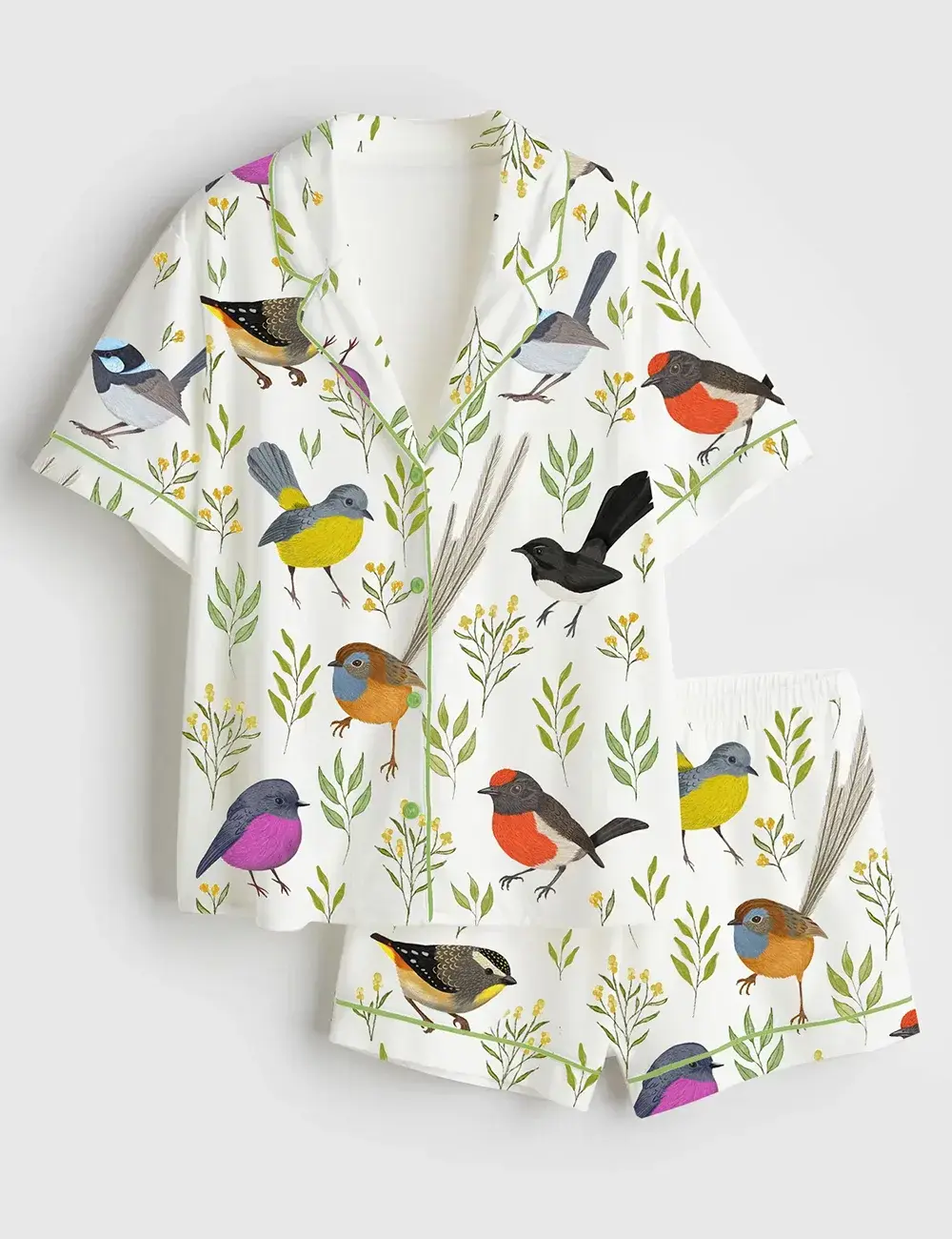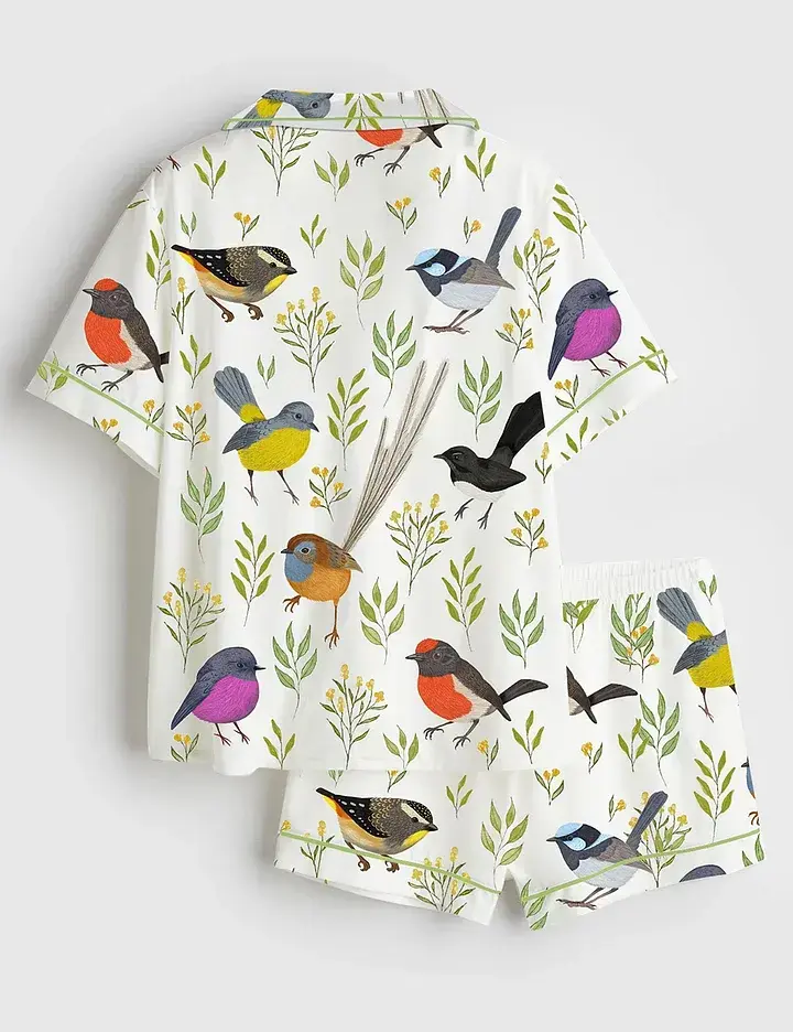 Women’s Little Birdies Short Sleeve Satin Pajama Set, Unique PJs with Design, Matching Family Sleepwear Set, Satin Pajama Set For Men Women Kids