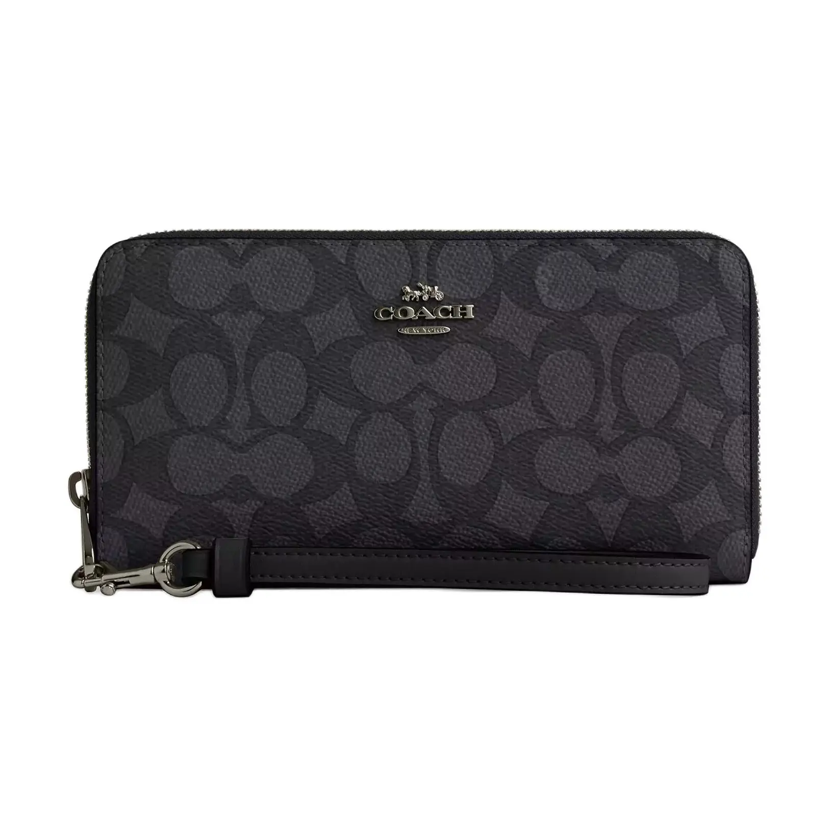 COACH Coach 19 Metal Logo Zip Wallet – Women's Regular Size, Charcoal & Black