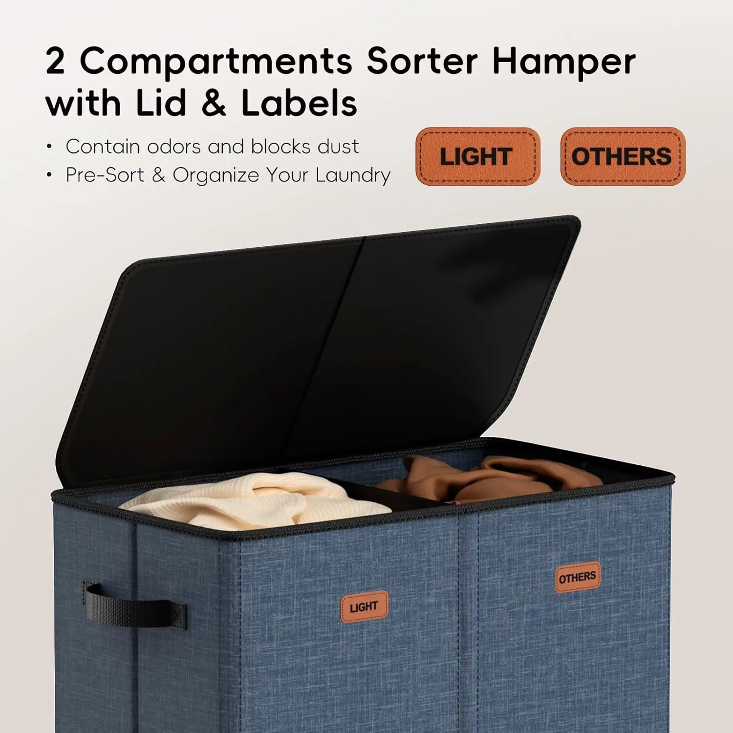 ·Lid Design & Odor Control: The fitted lid keeps dirty laundry out of sight, maintaining a tidy room aesthetic. It also effectively helps to contain odors within the divided laundry hamper with lid, ensuring your room always feels fresh and inviting.