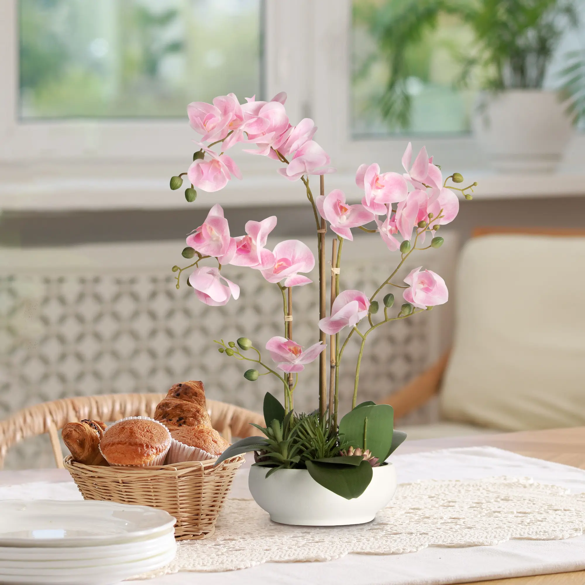 These realistic and beautiful artificial orchid plants and floral decorations are great ornaments, perfect for any space, including restaurants, hotels, offices, and homes