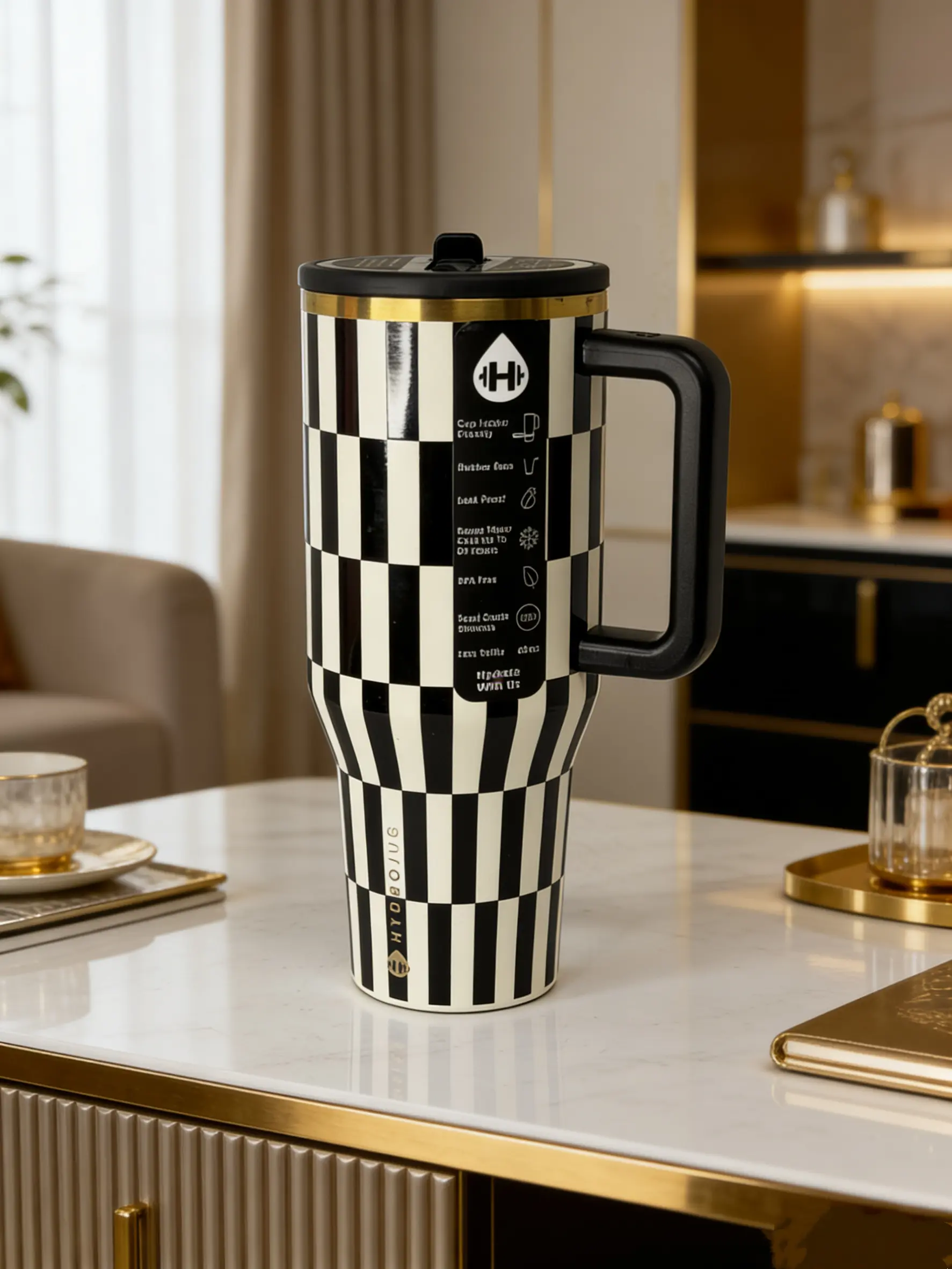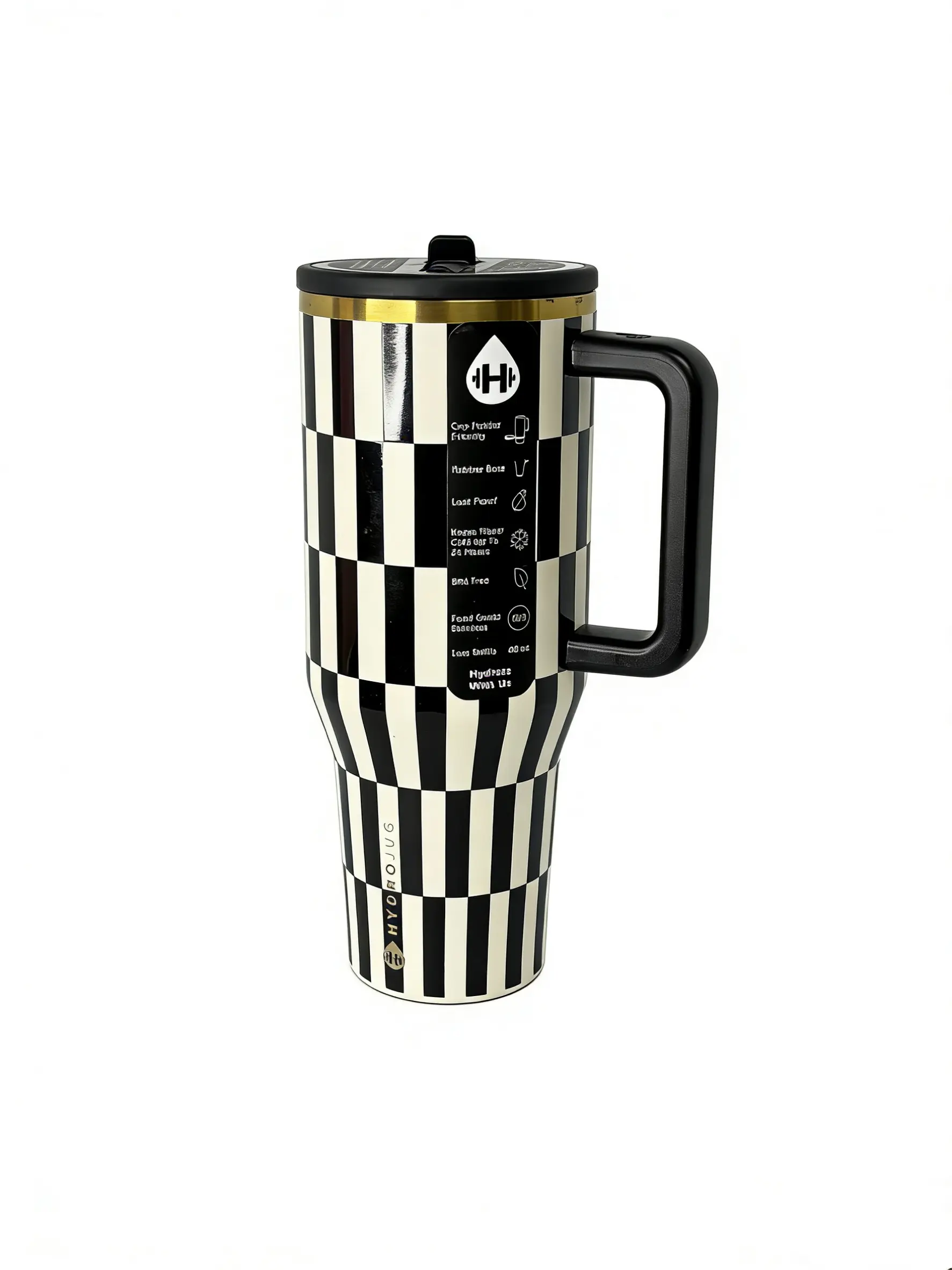 Elevate your drinkware with the HydroJug 40oz Checkered Tumbler. This retro-style tumbler features a striking checkered pattern, perfect for iced coffee, hot tea, or water. The stainless steel construction ensures durability and style. 🍵☕