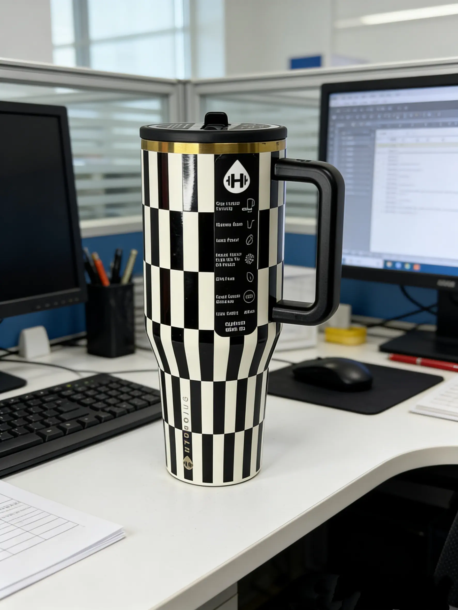 Ideal for various drinks, this tumbler is a versatile addition to your collection. Whether you're on the go or at home, the HydroJug 40oz Checkered Tumbler is your go-to drinkware. Stay hydrated in style. 🚗🏠