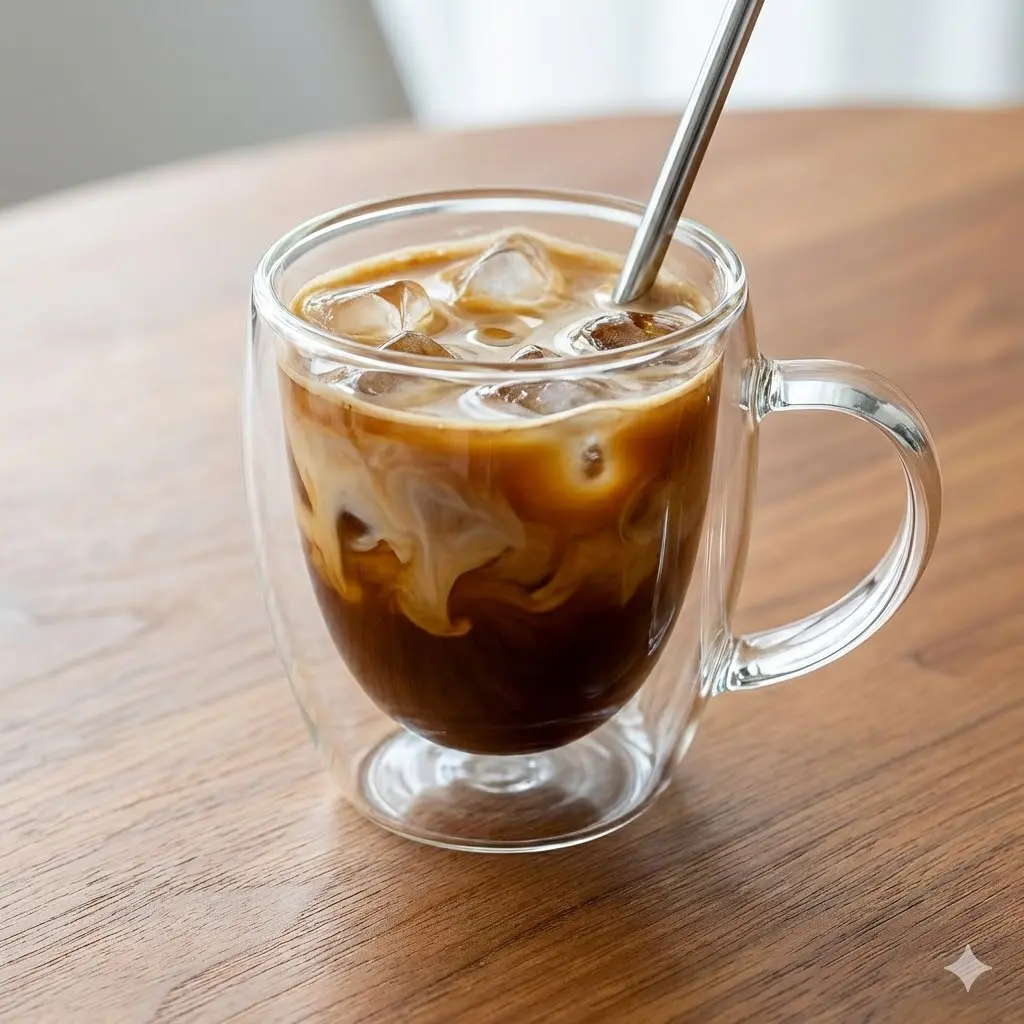 FLUR Iced Coffee Glasses (Set of 2) – Perfect for Iced Coffee, Lattes, Cold Brew & Matcha – For Hot or Iced Drinks – Double-Walled Borosilicate Glass – Handmade, Lightweight & Durable – 15.5oz