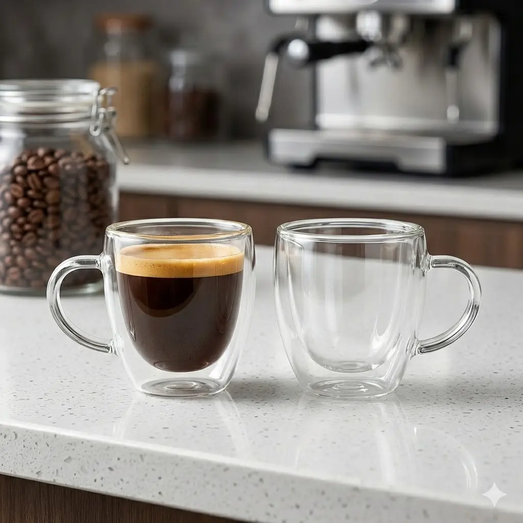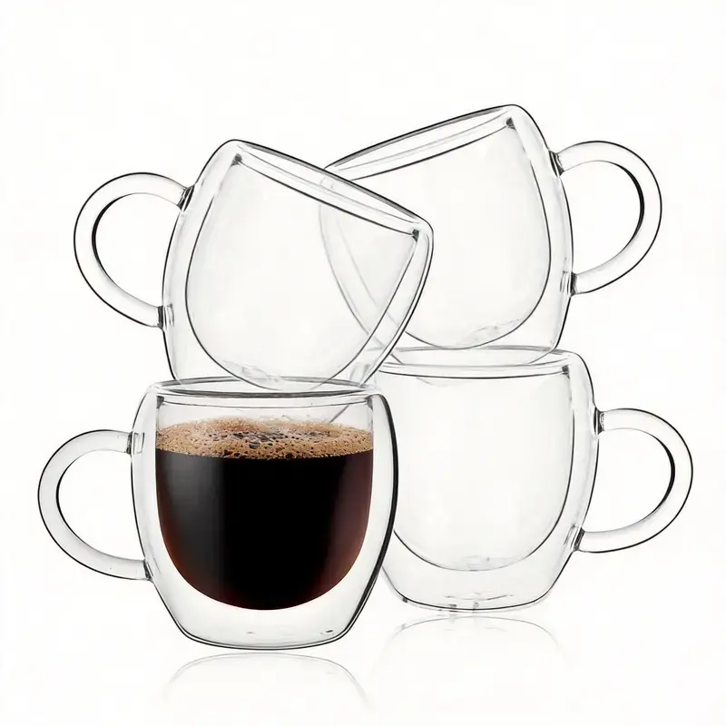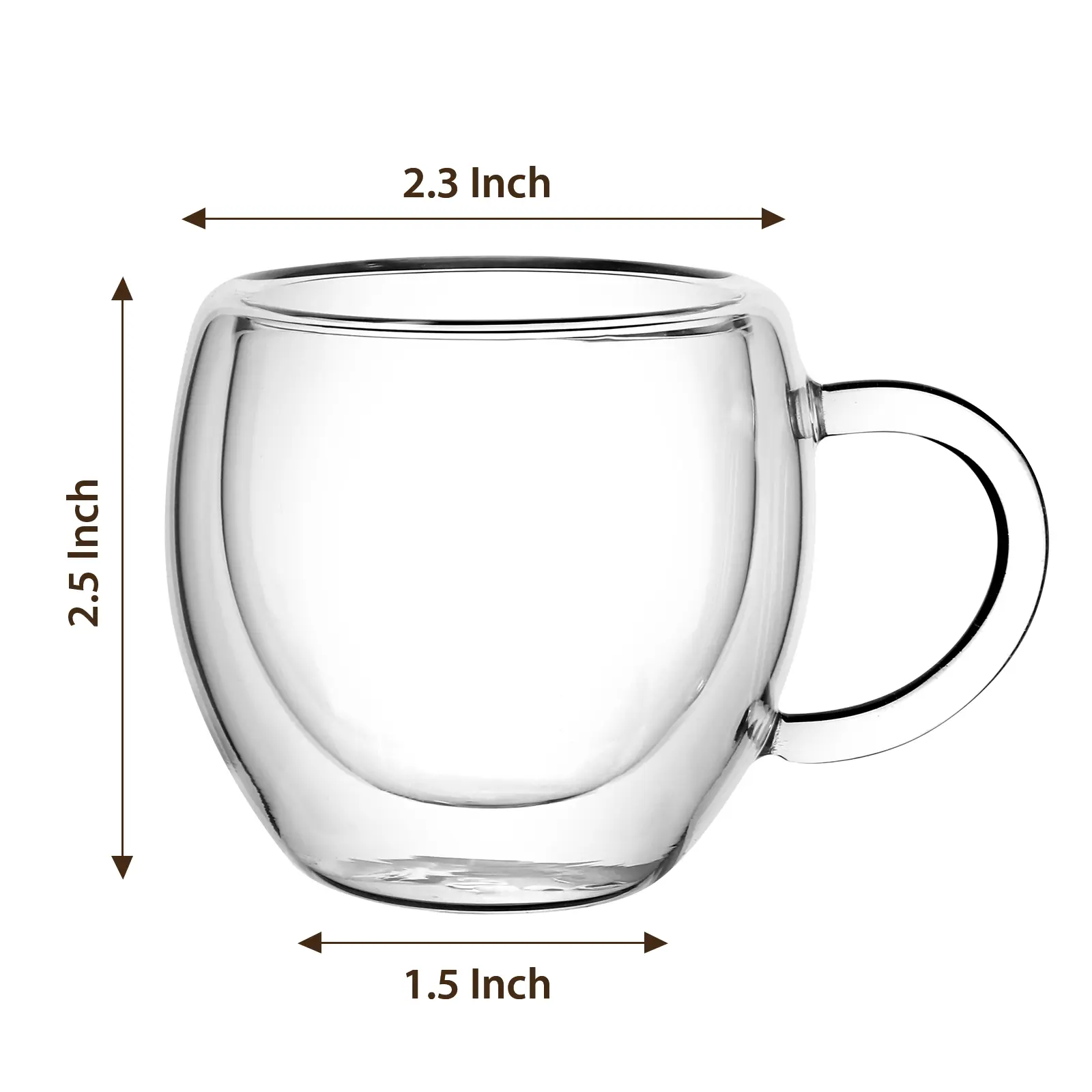 2.5oz Double Walled Espresso Coffee Cups Set of 4 with Handle,Clear Expresso Shot Cup Glasses,Tazas de Cafe Expreso,Drinkware Essentials,Borosilicate