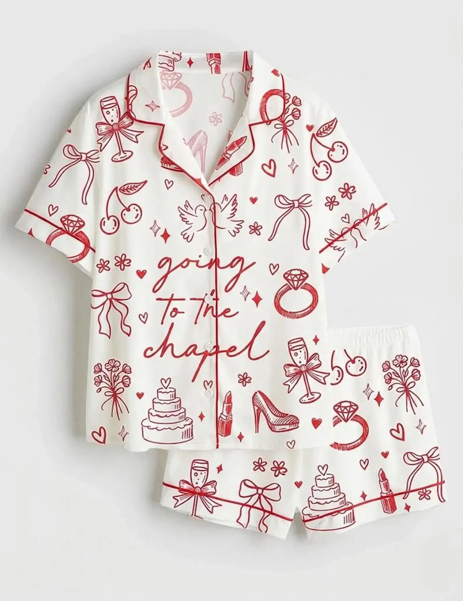 Going To The Chapel Satin Short Pajama Set, Gonna Get Married Coquette Wedding Bride Short Pajamas, Matching Family Sleepwear Set, Pajama Set For Men Women Kids