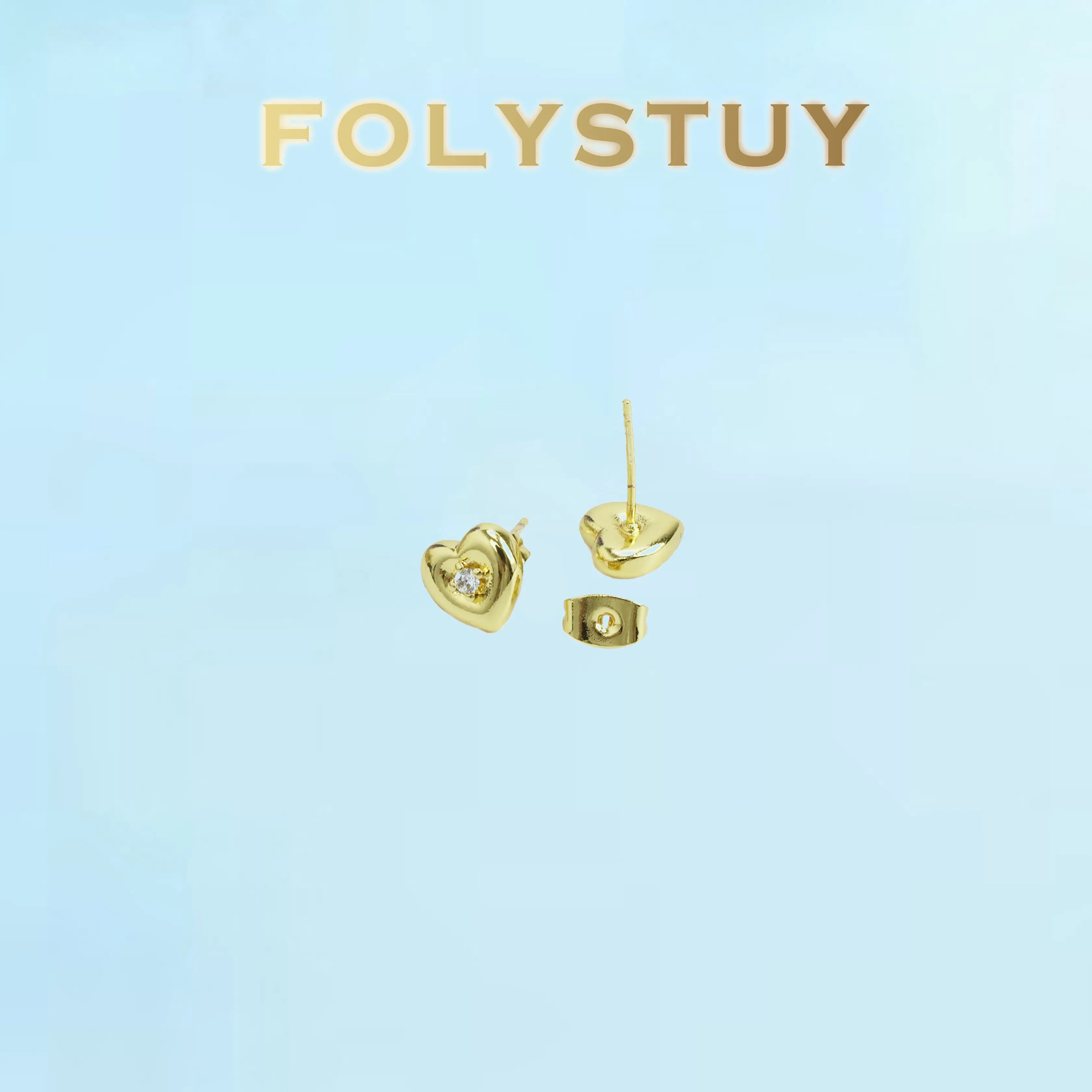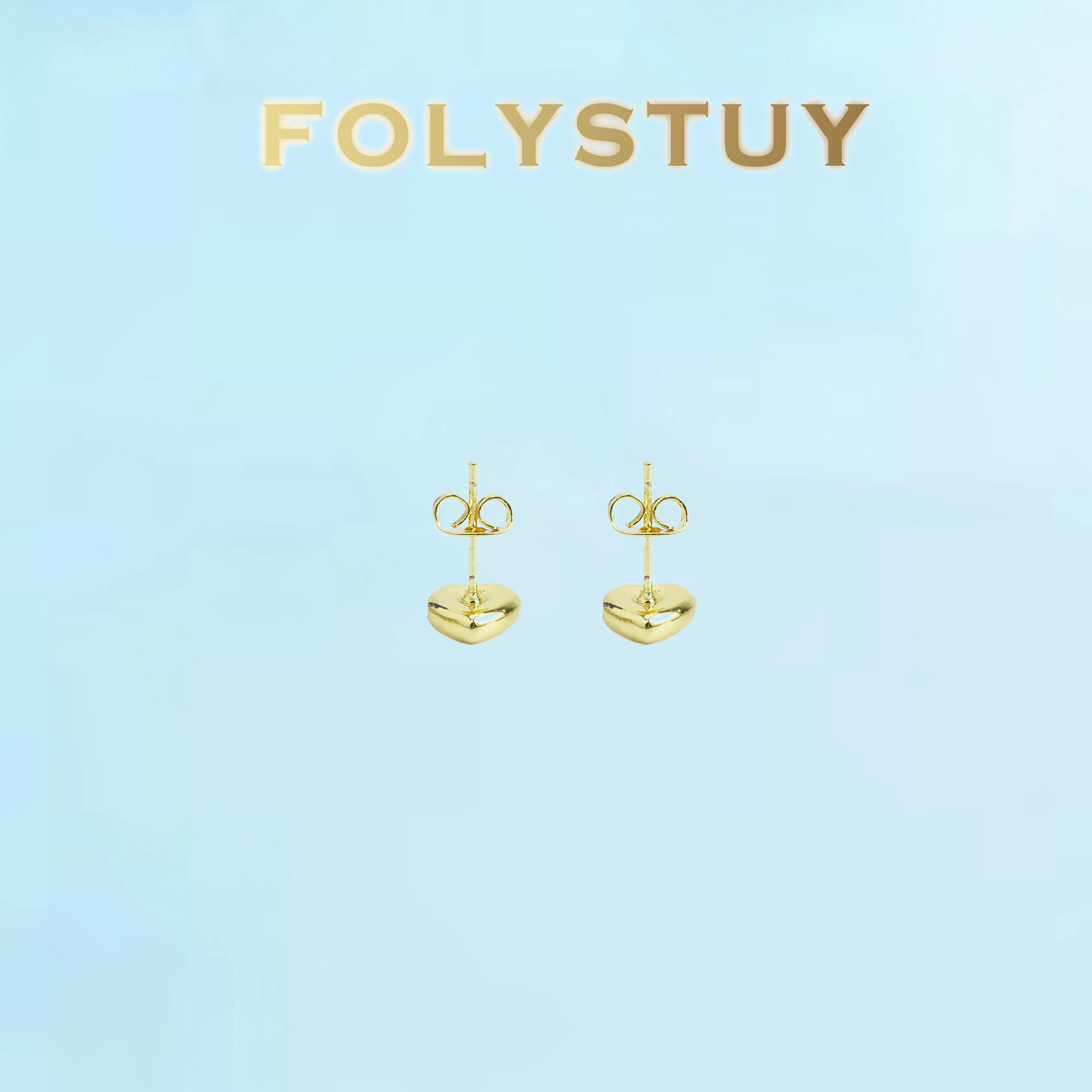 [FOLYSTUY (C122)]8mm Heart Stud Earrings with Tiny Crystal, Dainty Love Shape CZ Earrings for Women, Romantic Everyday Wear Jewelry Gift