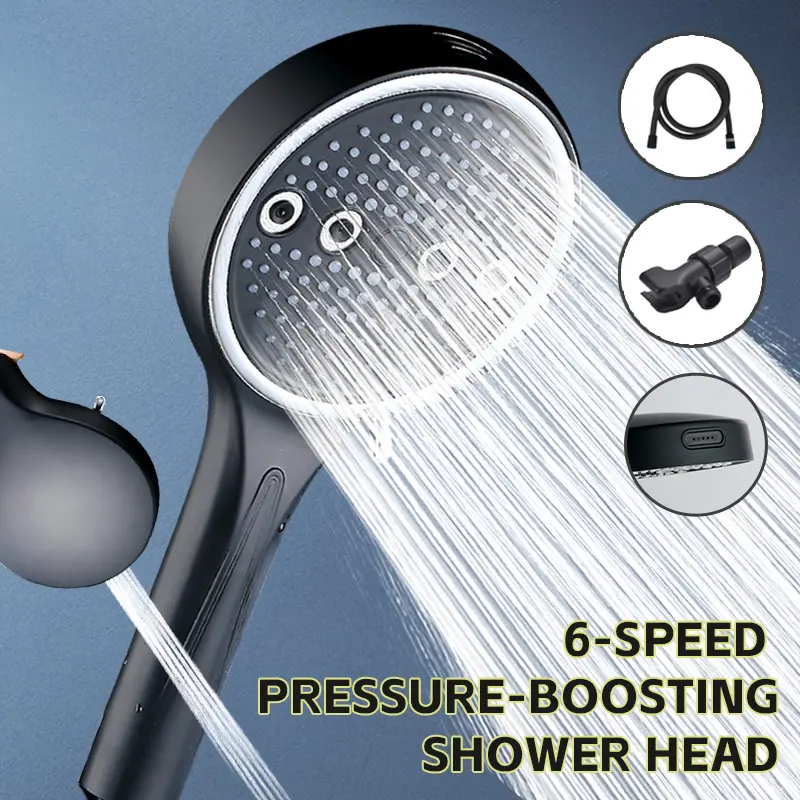 High Pressure Handheld Shower Head Combo, 5.12 Inch Rain Showerhead with 6 Spray Modes, Long Hose & Holder, Wall-Mounted Bath System, Polished/Matte Black, Works Great with Low Water Pressure, Ideal for Modern Bathroom Showers