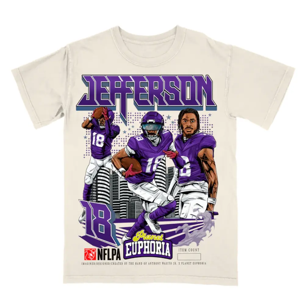 Comfort Colors Justin Jefferson V2 Graphic T-Shirt, Minnesota Football Retro Sports Streetwear Tee Vintage NFL Aesthetic Style, Unisex Fan Outfit for Men Women, Soft Washed Cotton Shirt Game Day Wear