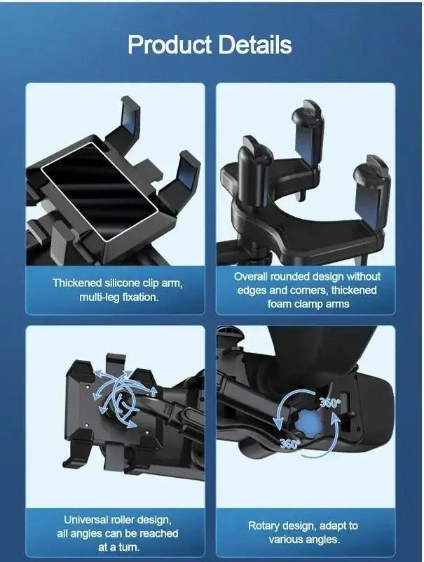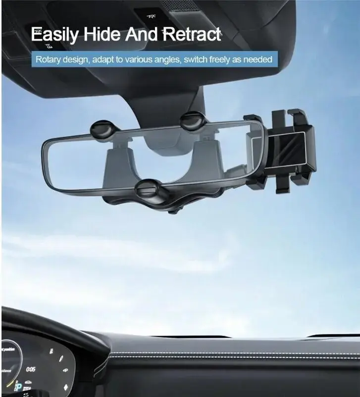 [Rotatable and Retractable Car Phone Holder] The multifunctional car rearview mirror phone holder with 360° rotation design, you can put your cell phone in any direction (horizontal, vertical and more) as you like to enjoy the best driving experience. The arm length can be telescoped 0-5cm without obstructing your vision and ensure a safer travel for you and your family.