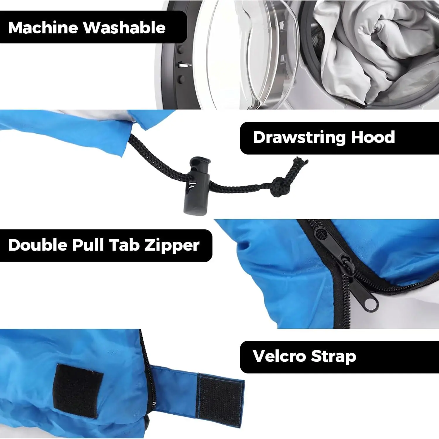 ·Features: Wraparound zippers, reversible anti-snag zipper, draft tube, 3D hood with adjustable drawstrings, bottom ventilation zipper