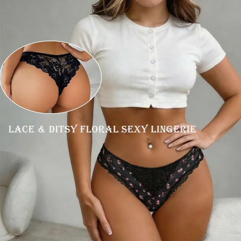 Classic black base paired with soft ditsy florals—retro yet gentle—with a delicate small butterfly embellishment at the waist. Sweet-girl vibes are dialed up, while lace elements add a touch of sensuality, nailing that pure-desire aesthetic.
