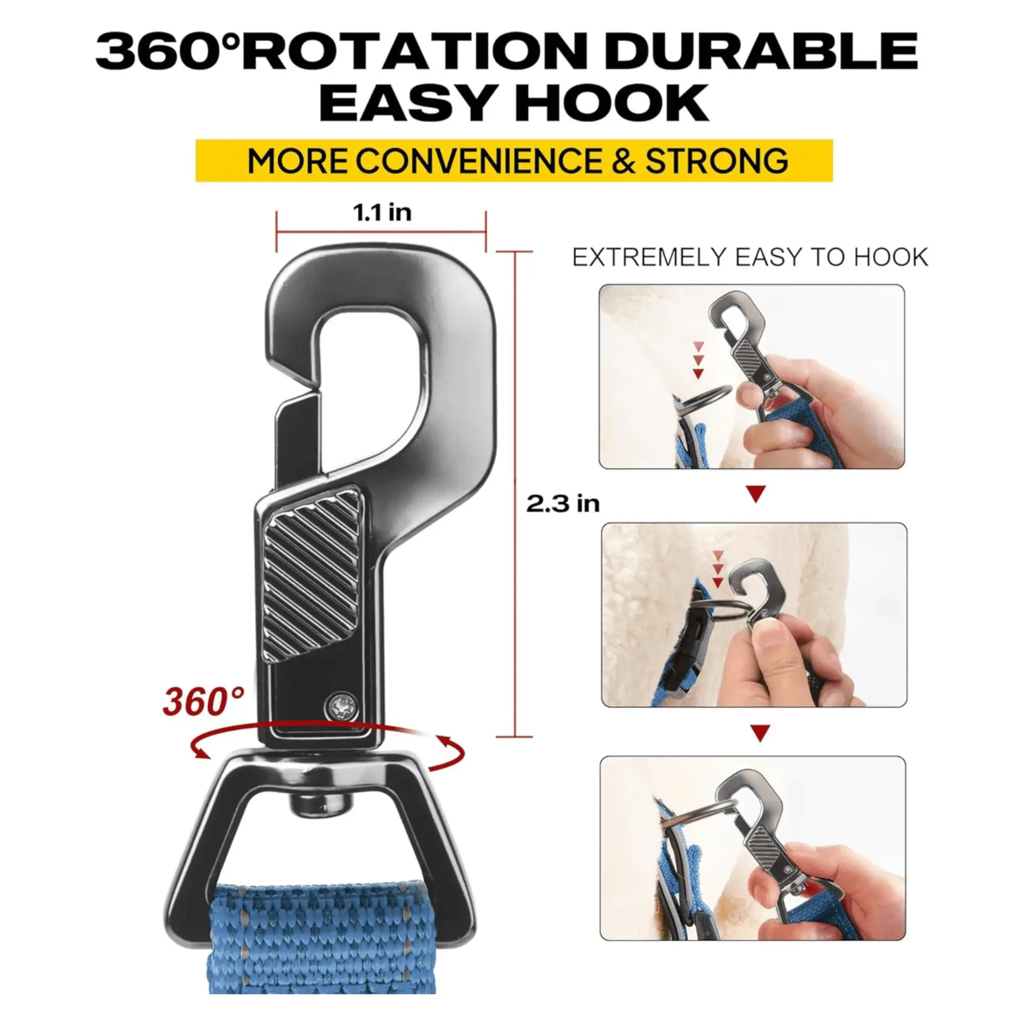 ·Advanced Easy Snap Hook: Quick-lock metal clasp with 360° swivel prevents tangling and ensures secure attachment.