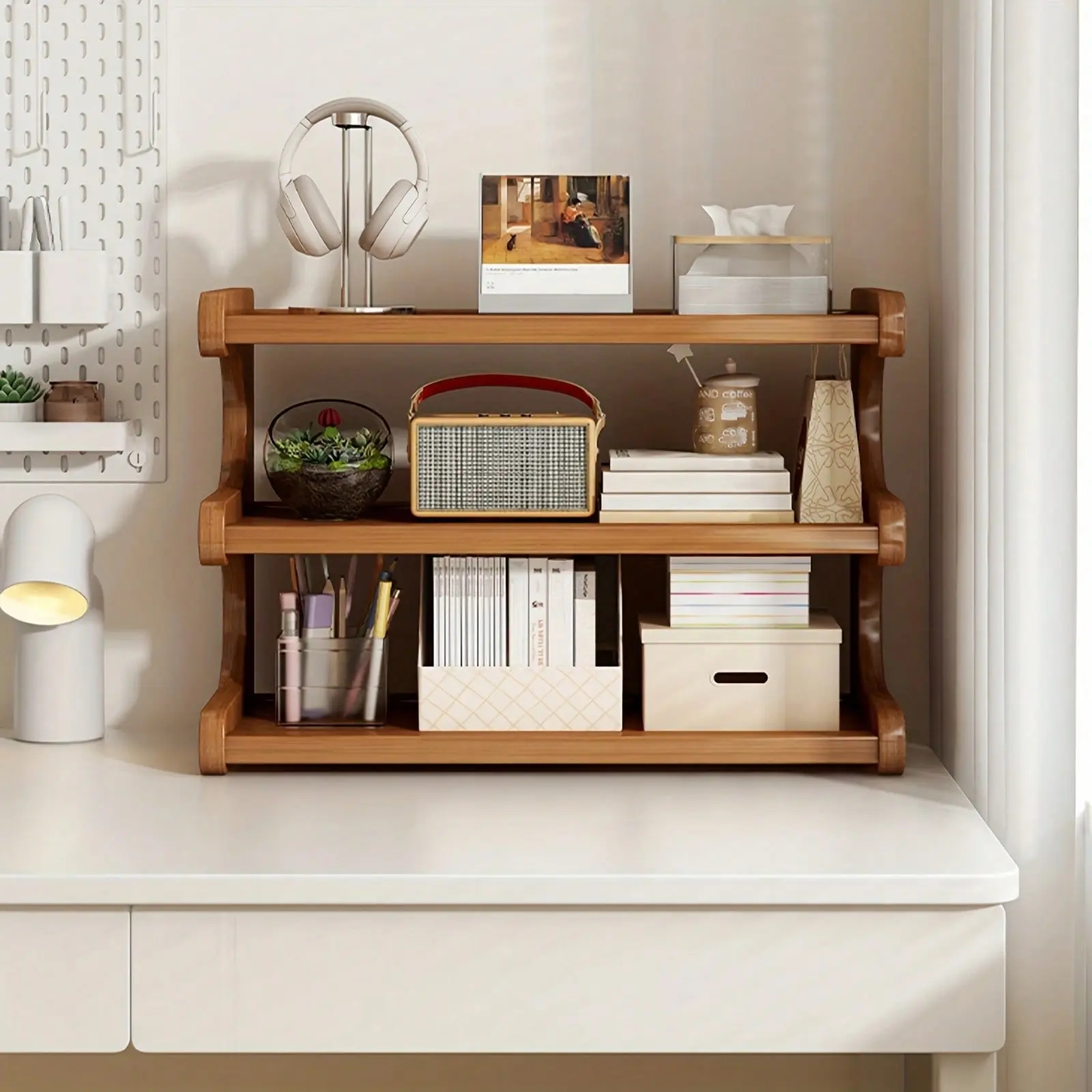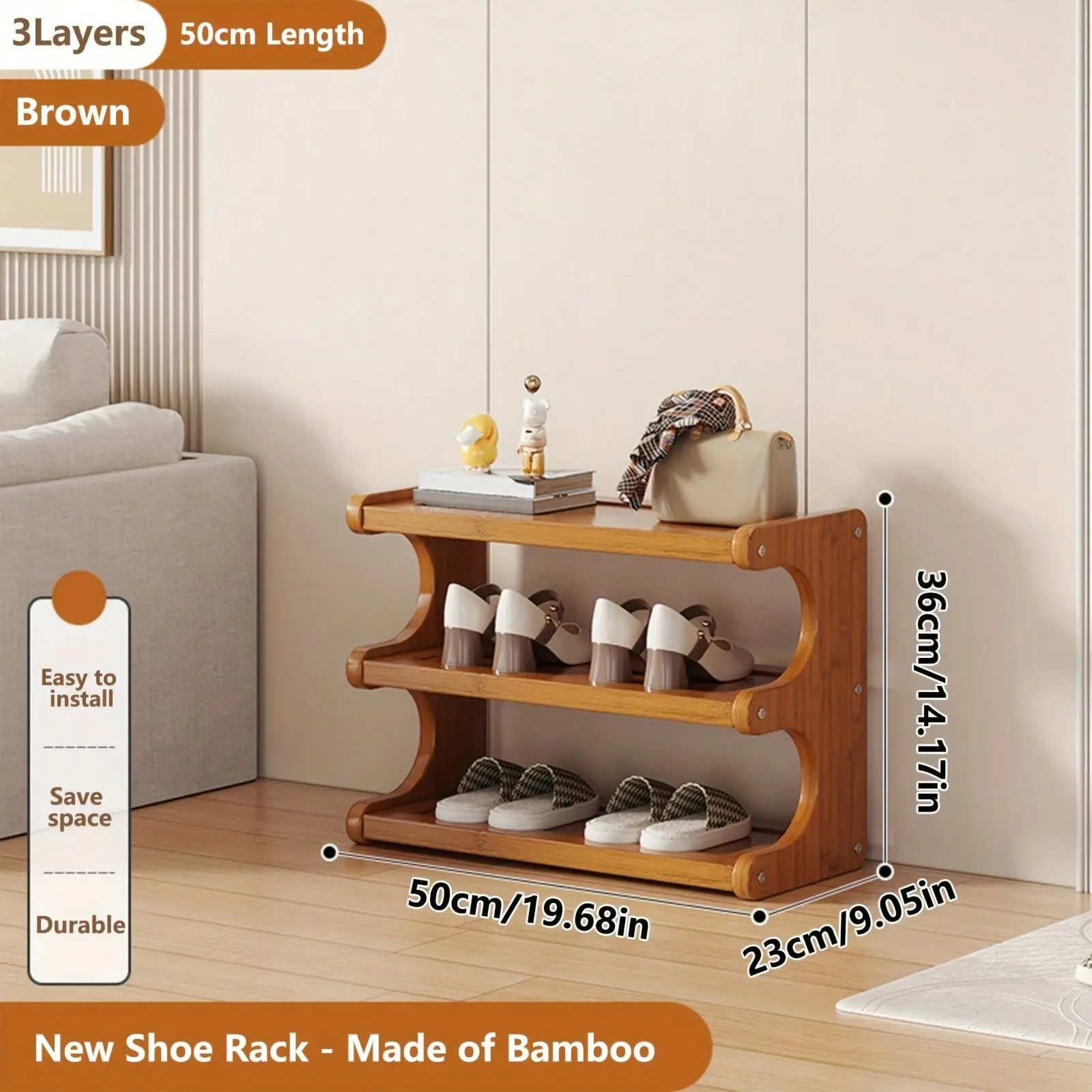 This shoe rack features a wood grain finish, adding a touch of elegance to any room. The natural wood color complements various interior styles.
