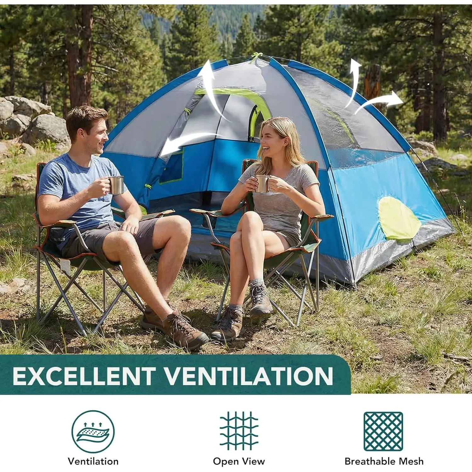 【Lightweight Travel】 Weighing just 5.8 lbs (2-person) or 8.7 lbs (4-person), these tents fold into a compact carry bag. An ideal choice for car camping, fishing, or short trips, ensuring your gear never weighs you down.