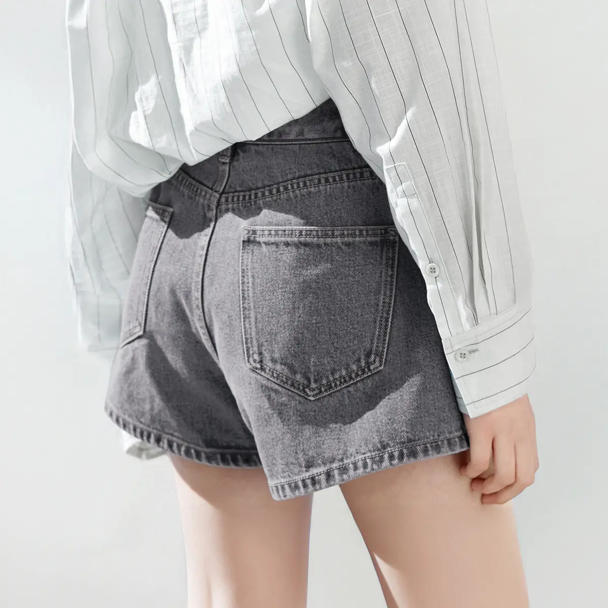 Give your off-duty look some attitude with this denim mini skorts.