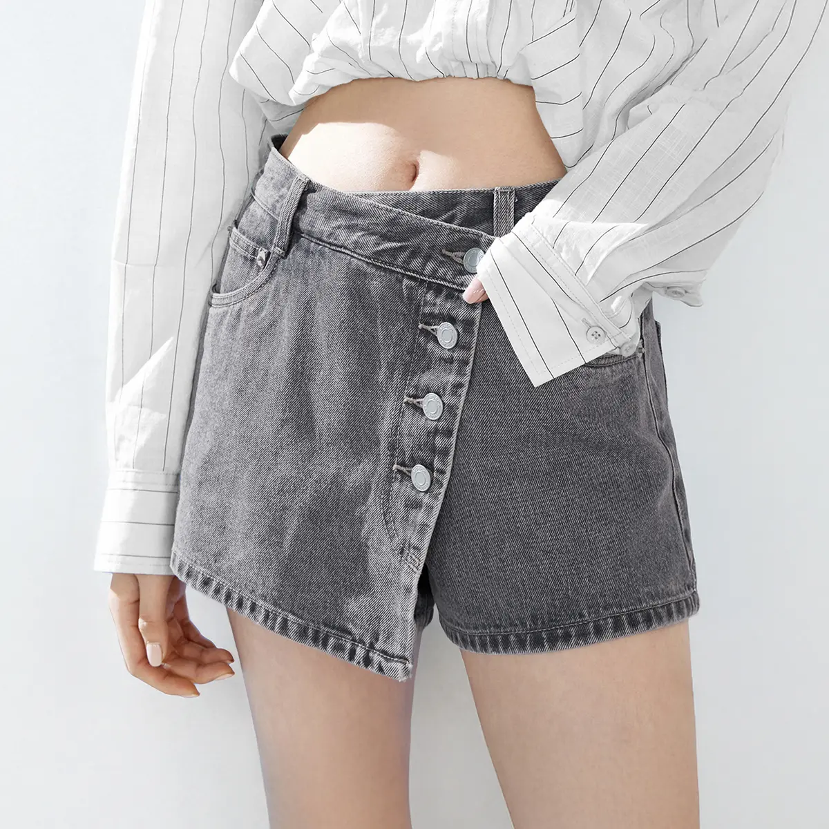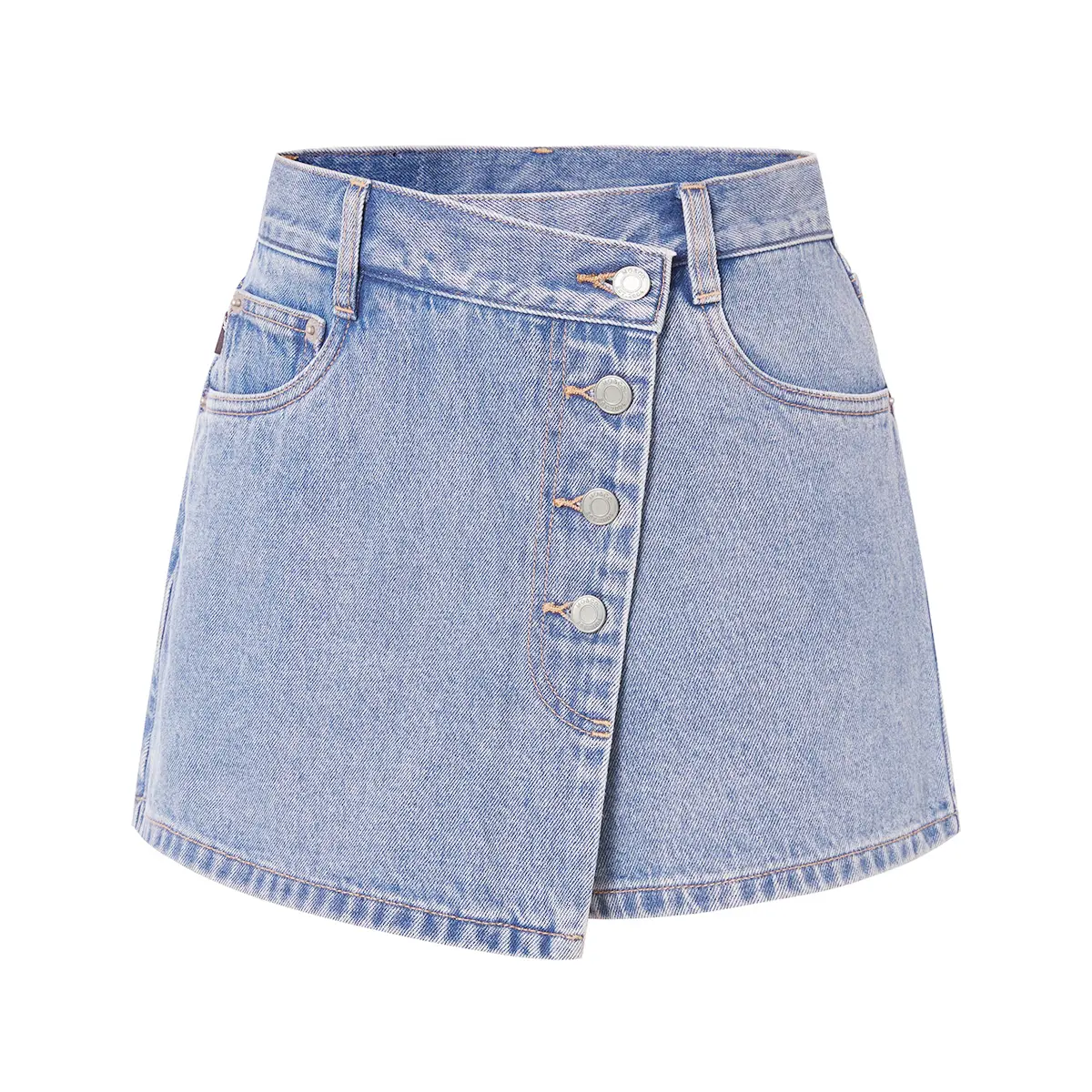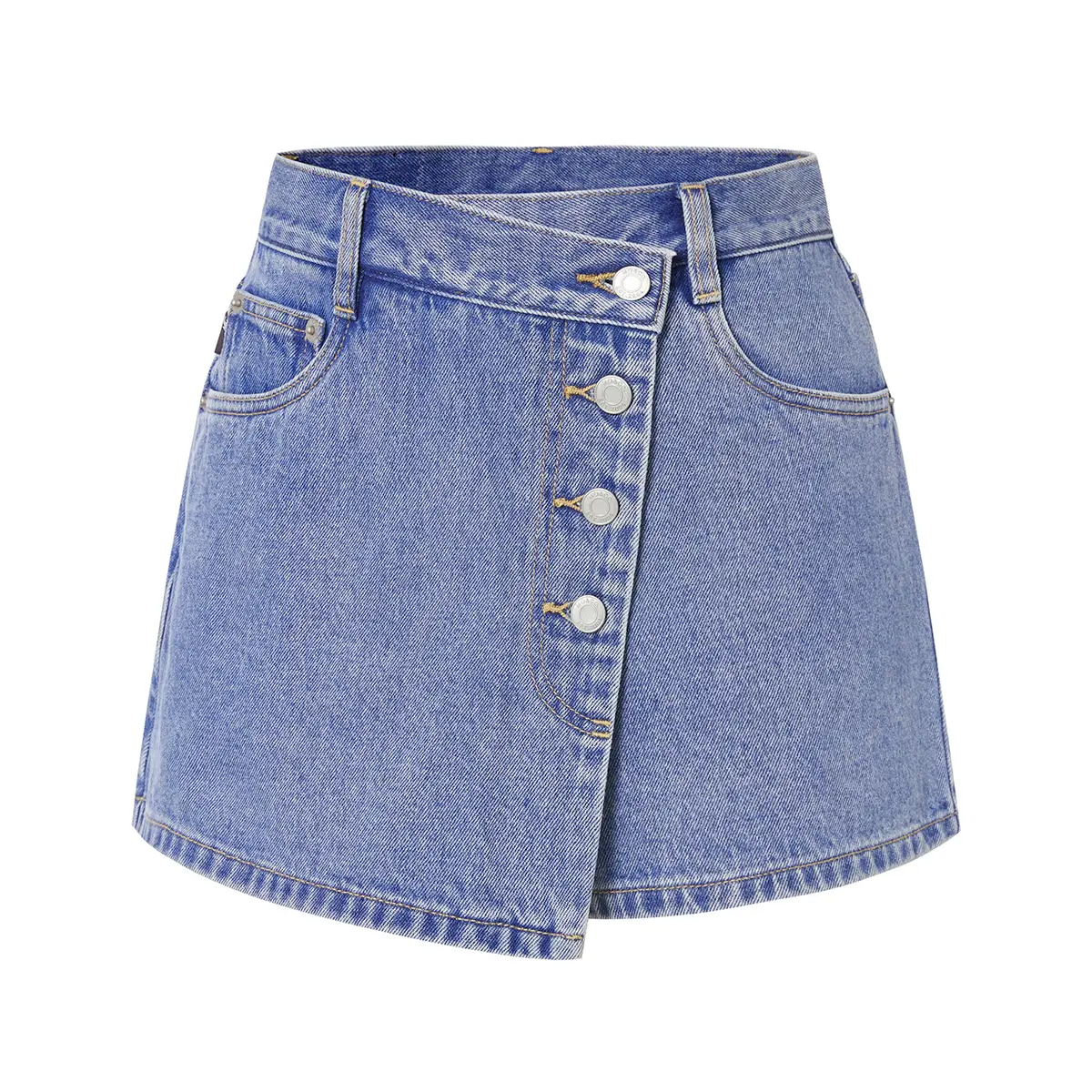 Women's Classy Mid-Rise Asymmetric Button Denim Skorts