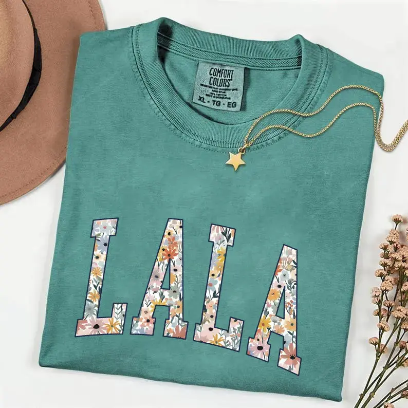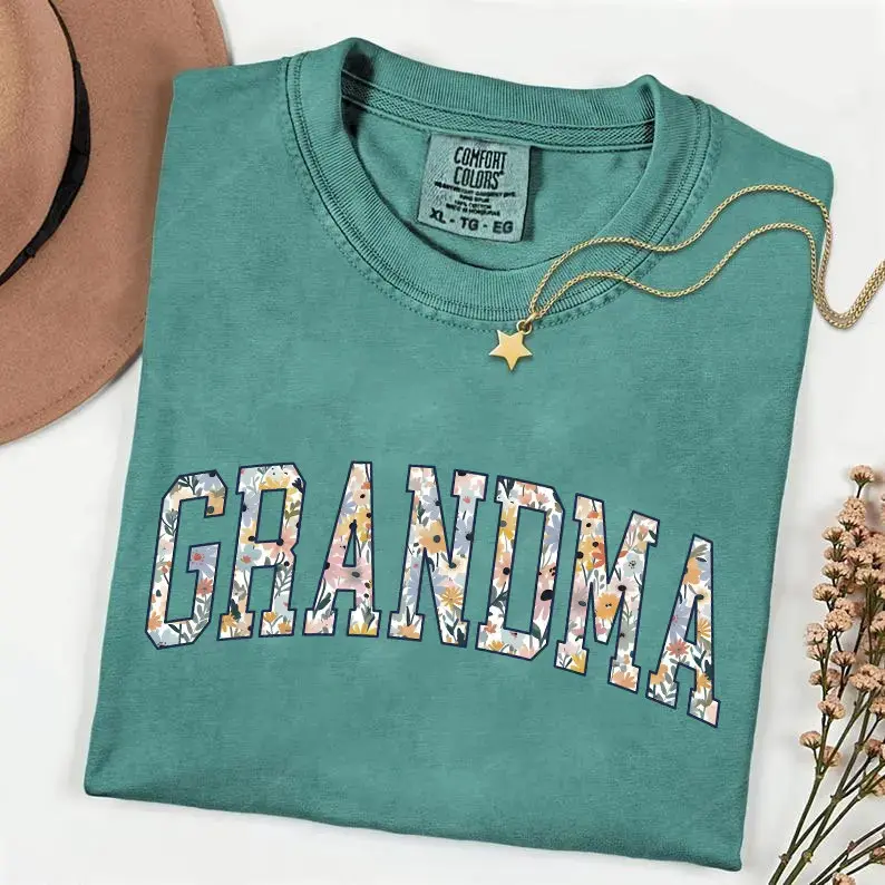 Comfort Colors Custom Grandma Light Green T-Shirt Personalized Family Gift Floral Mama Nana Auntie Mimi Gigi Grammy Shirt Mother's Day Gift - DarkFlex