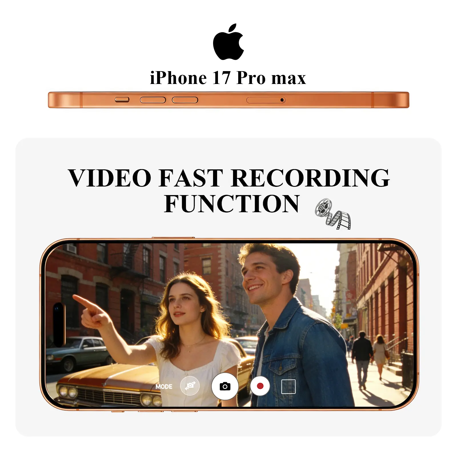 Refurbished iPhone 17 Pro Max 512GB Orange (Unlocked) - 6.9″ all‑screen OLED display & A19 PRO chip, supports any carriers, excellent condition with 100% battery capacity, like-new performance.