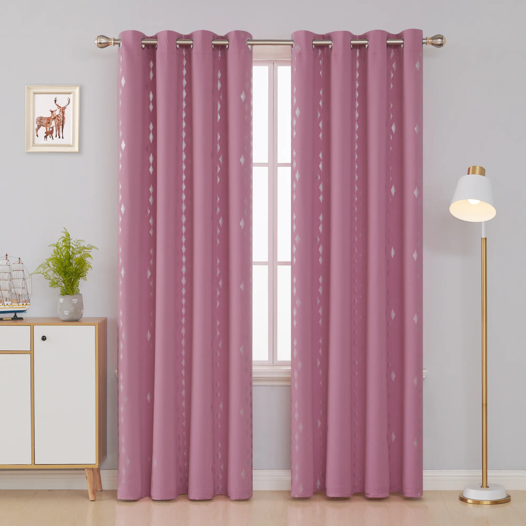 ·Elegant Design: These curtains feature a sleek silver diamond pattern, perfect for modern interiors. The white ring top adds a clean, minimalist touch. No tiebacks are included, offering a hassle-free setup. Ideal for those seeking a stylish yet simple solution.