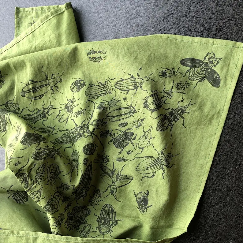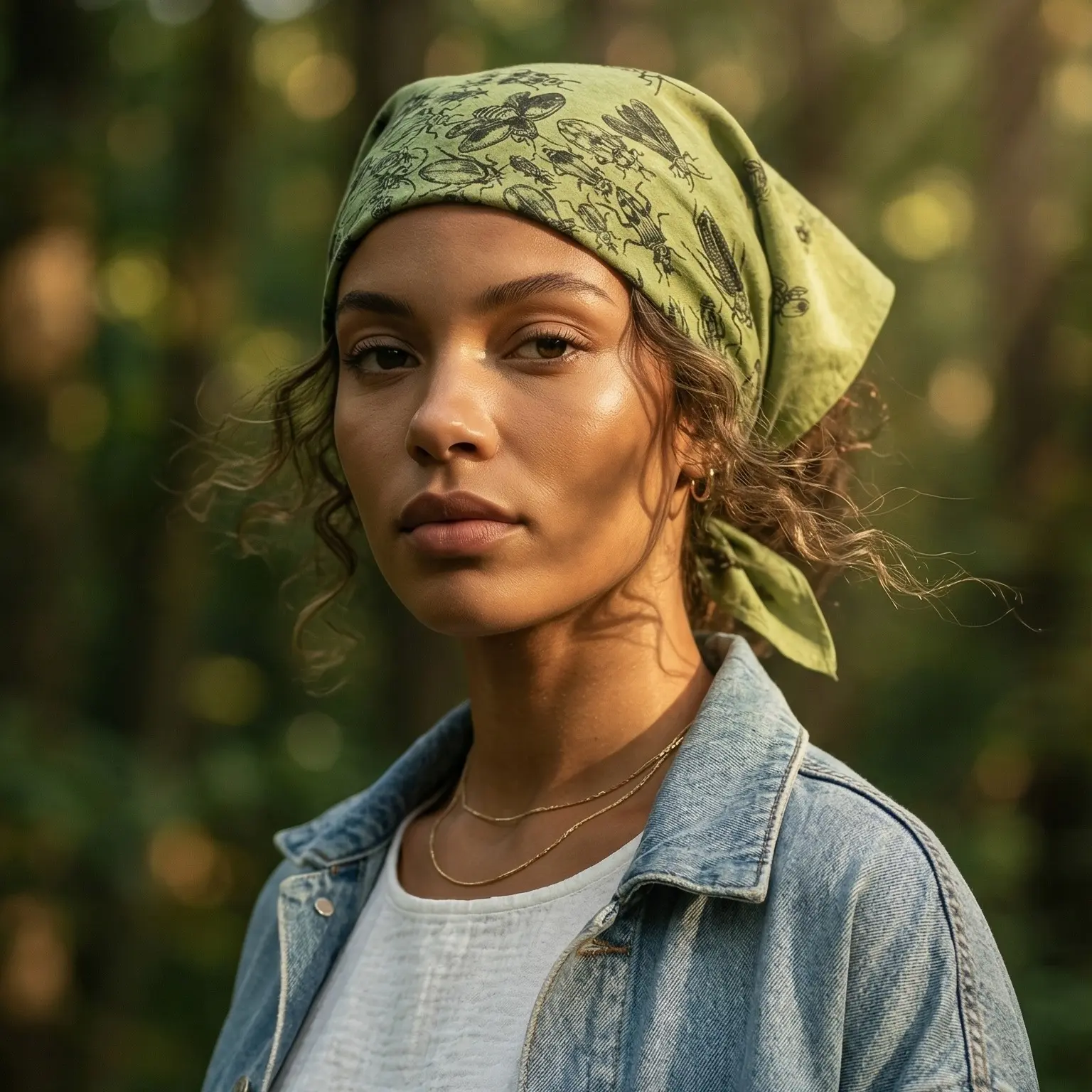 5. Nature Bug Bandana – Beetles Cotton Scarf, Grass Green Head Scarf, Unique Gift for Nature Lovers