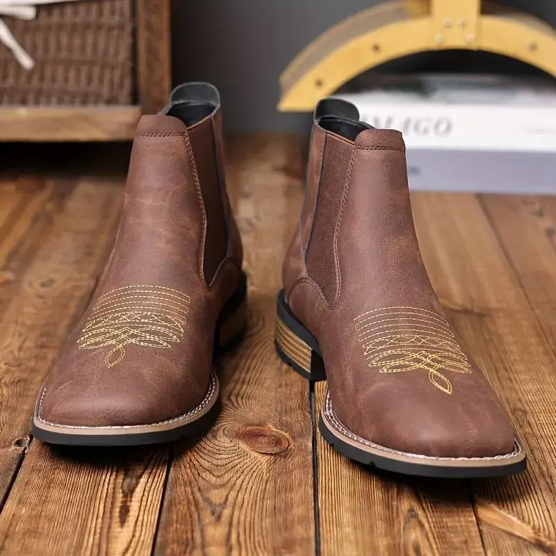 Featuring authentic Western-inspired gold embroidery, a classic Chelsea elastic gusset, and a durable lugged sole, these boots blend iconic cowboy aesthetics with modern convenience. Perfect for the ranch, city streets, work, and weekend outings, theyre the ultimate wardrobe staple for any American man who values style and durability. Available in 2 rugged colorways to match every vibe.