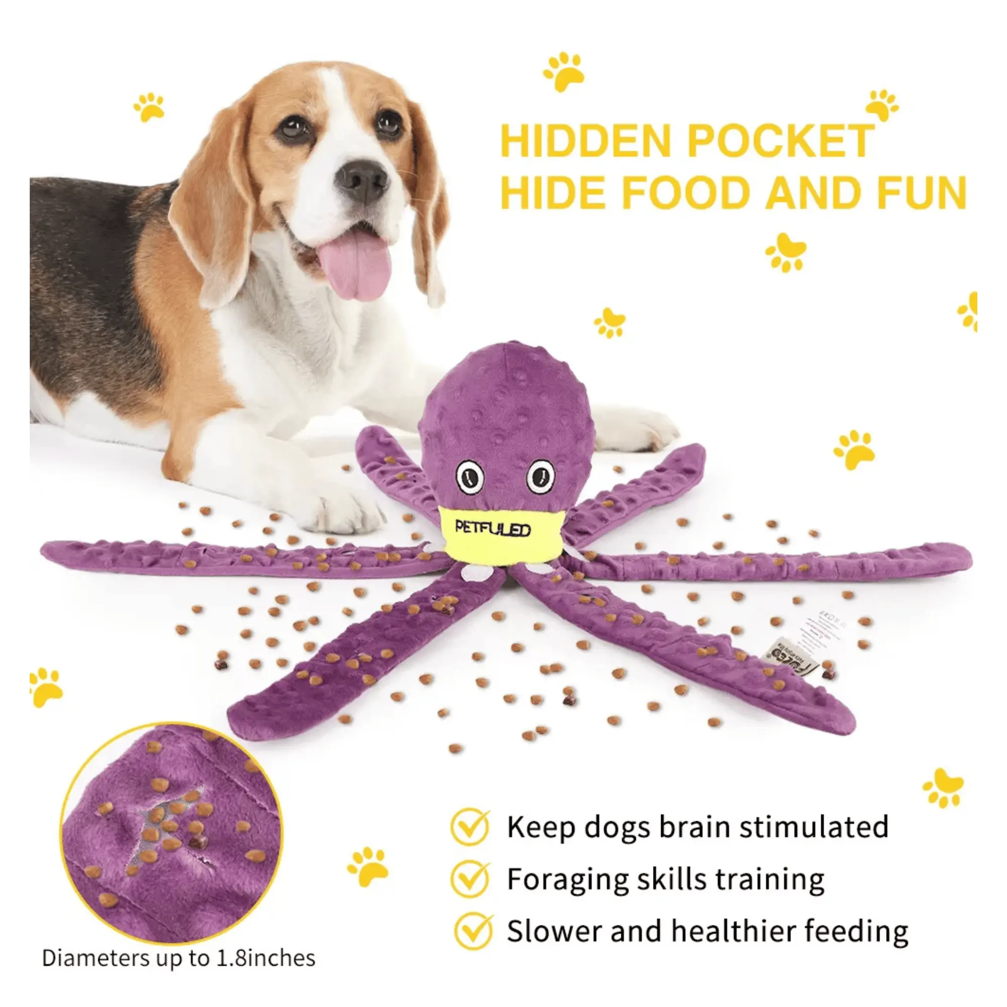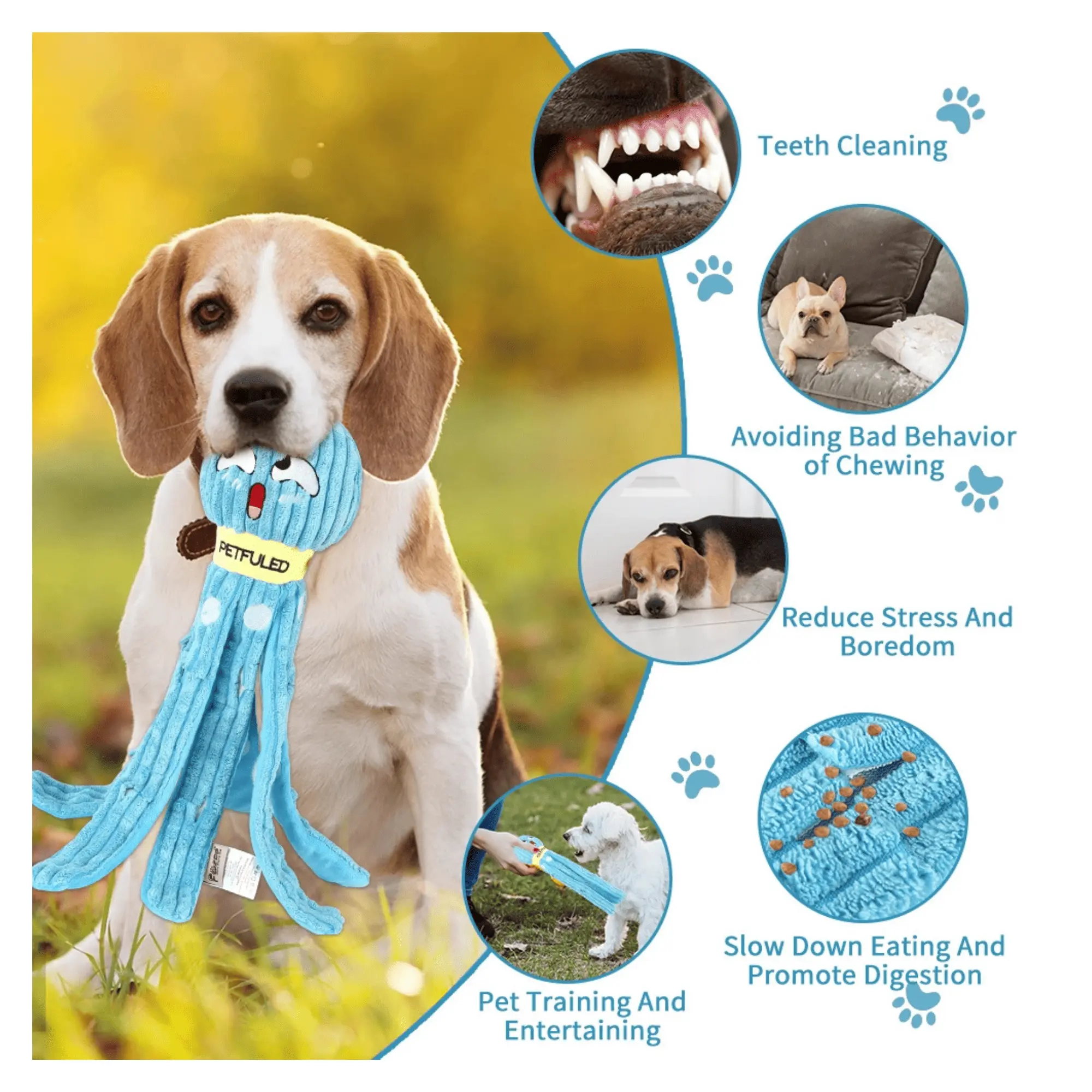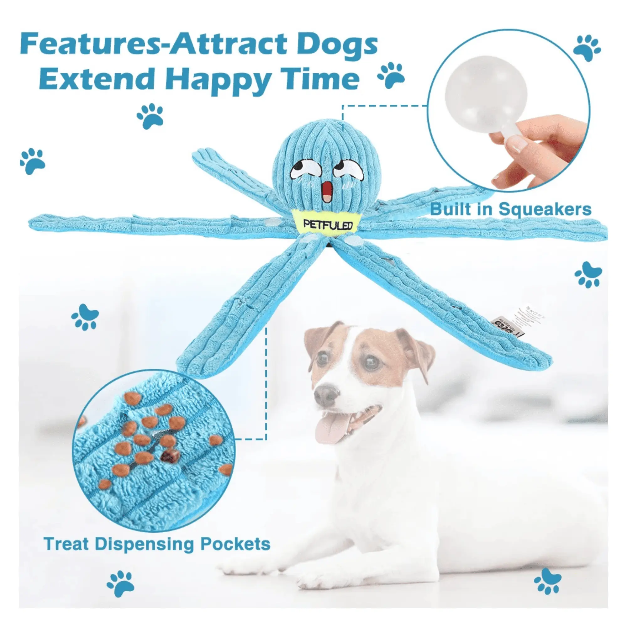 Octopus Dog Toy with Squeaker Interactive Plush Chew Toy with Treat Hiding Compartment