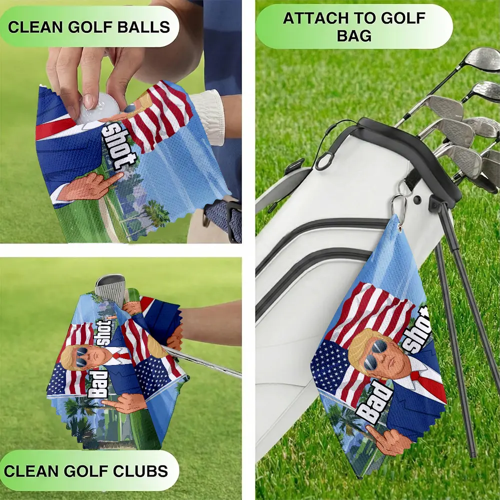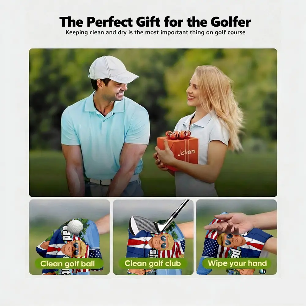 This eye-catching towel is available in two sizes-16 x 24 inches and 16 x 16 inches-and features a tri-fold design complete with a central metal grommet and a sturdy, durable carabiner clip.It serves as the perfect companion for your golf bag, not only drawing admiring glances but also adding a touch of personal flair to your game.As a unique gift for golf enthusiasts, it offers an ideal blend of affordability and practical utility.