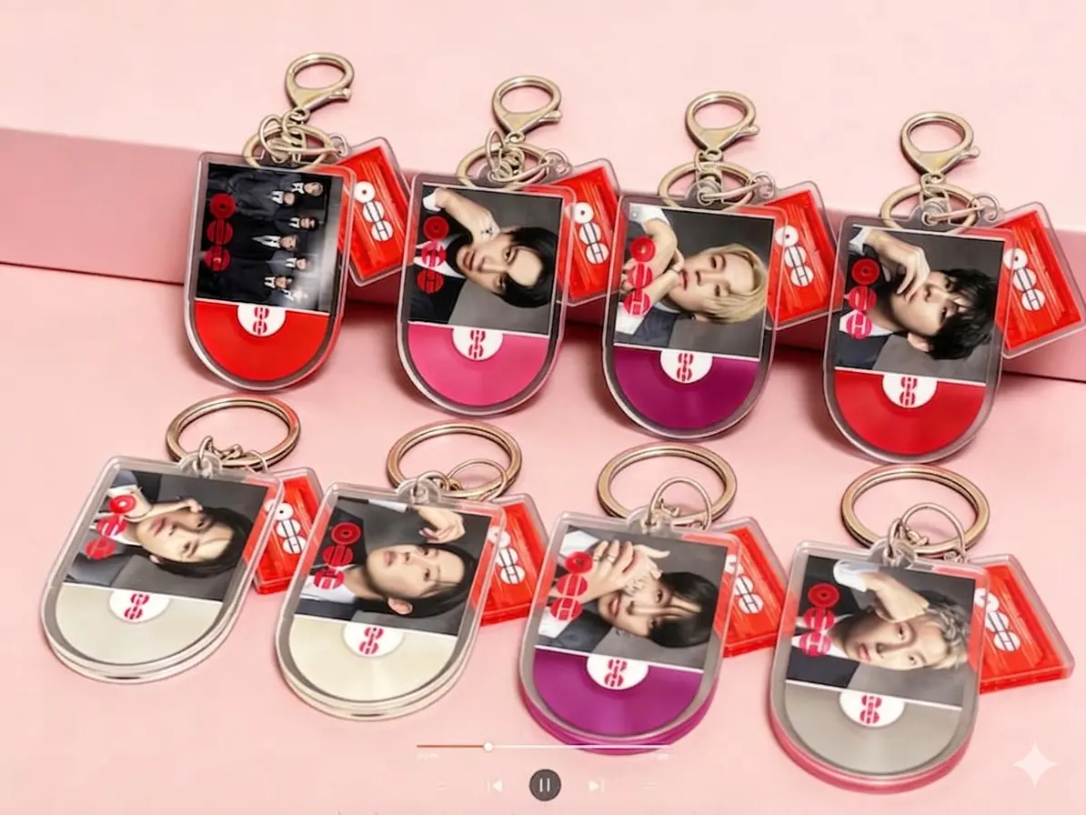 7 Members Acrylic Keychain, K-Pop Vinyl Record Cassette Charm, King Boys Merch, Cute Key Accessory