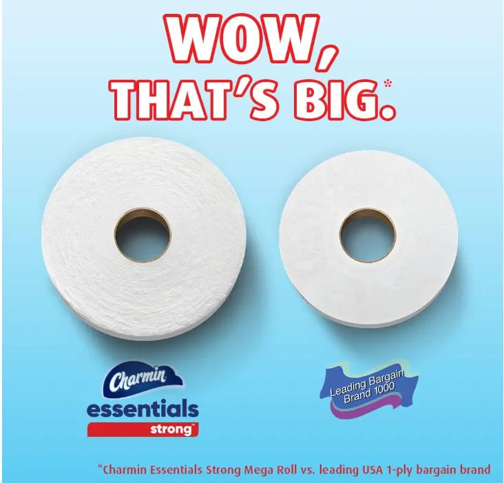 ·Charmin Essentials Strong holds up better when wet vs. the leading USA 1-ply bargain brand