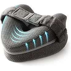 This orthopedic knee pillow is designed to relieve sciatica, back, and hip pain by promoting proper alignment of the hips, legs, and spine. Its heart-shaped design measures 10 x 9.5 x 5 inches to fit comfortably between the knees for side sleeping.