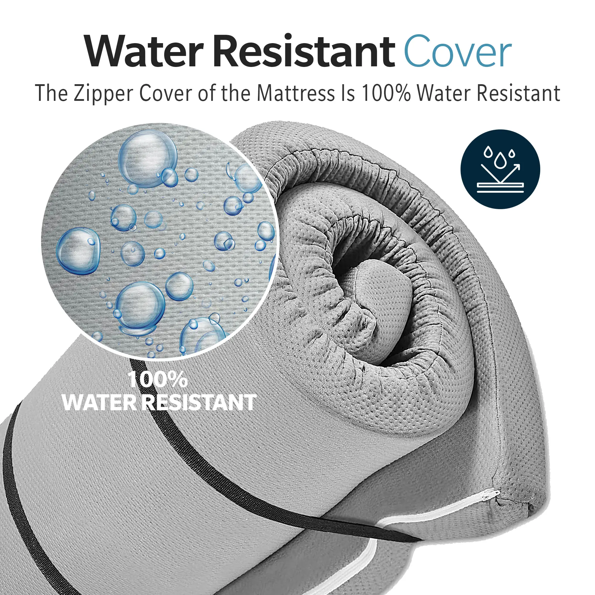 A water-resistant zipper cover shields against moisture and spills. This feature ensures easy maintenance and durability. The cover protects the mattress in various environments, making it a practical choice. Stay dry and comfortable with this reliable protection.