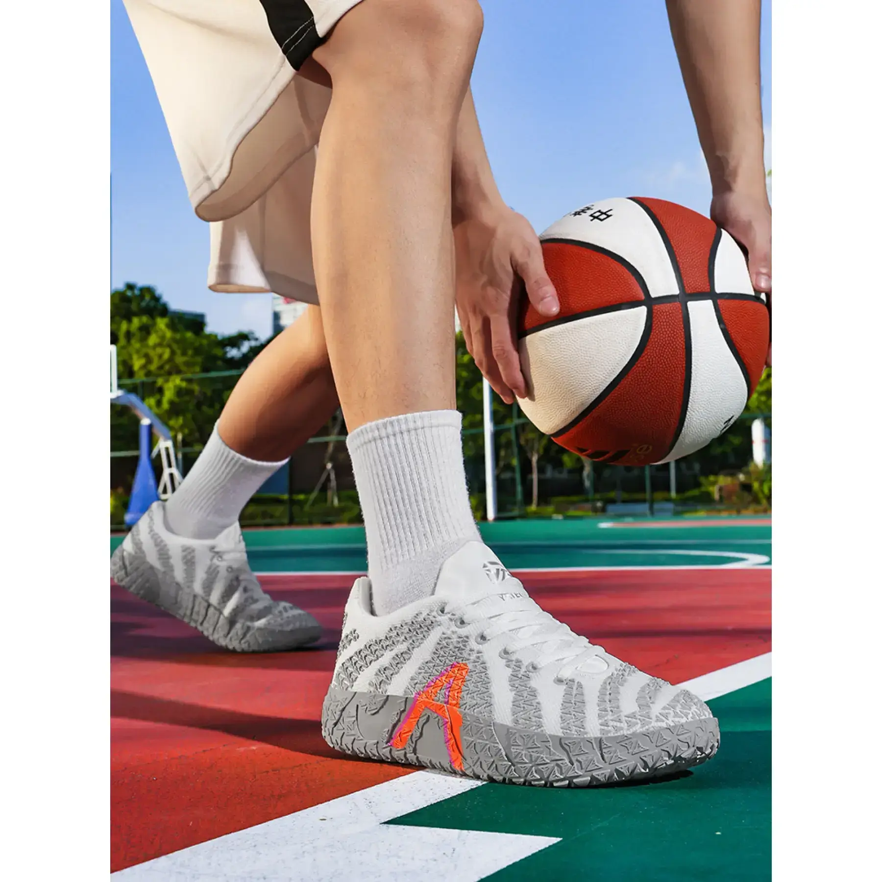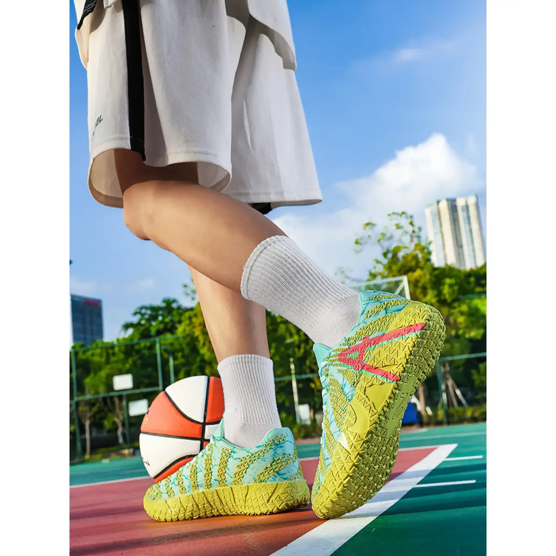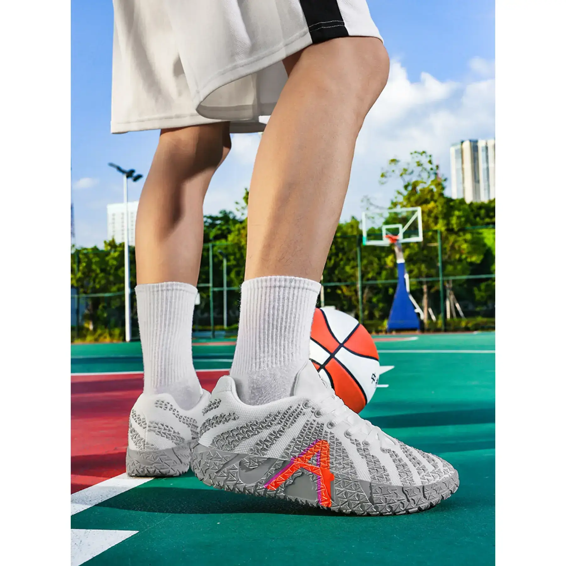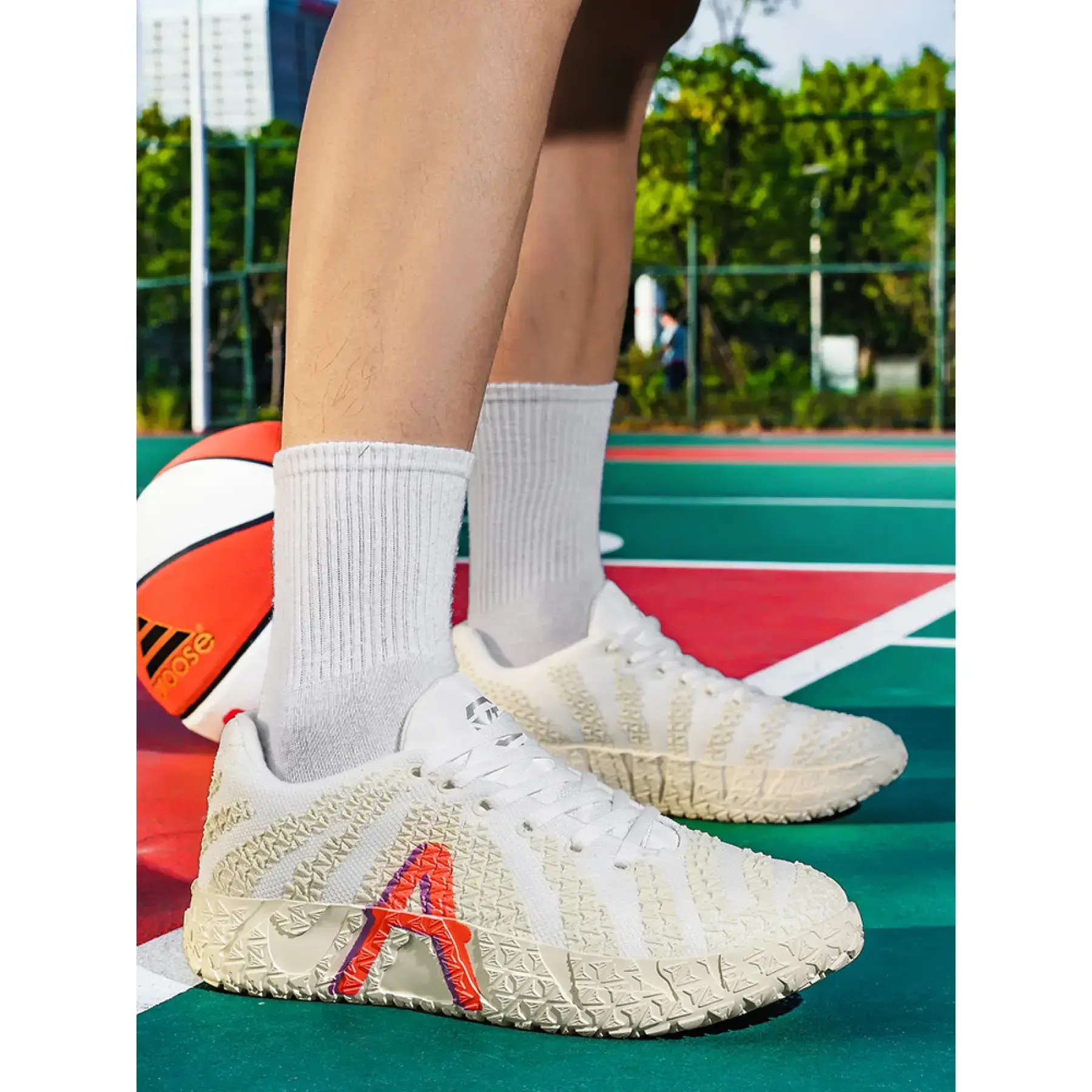 Built for the American hooper who dominates both the court and the streets, these white low-top basketball sneakers deliver uncompromising performance and head-turning street style.Crafted with a ultra-breathable mesh upper, these kicks keep your feet cool and ventilated through intense pickup games, training sessions, and all-day streetwear wear, no matter how hot the action gets. The star of the show is the rugged non-slip traction sole, engineered with a textured, grippy pattern that locks you in for explosive cuts, quick stops, and maximum control on any court surface.A bold neon accent adds a vibrant, eye-catching pop to the clean white base, making these sneakers perfect for standing out on and off the blacktop. Lightweight, supportive, and built for speed, they transition seamlessly from competitive play to casual street fits, pairing flawlessly with jeans, joggers, or basketball gear.Whether youre lacing up for a game, hitting the streets, or upgrading your sneaker rotation, these American hooper-approved kicks are a must-have. Grab your pair now and own the court and the streets!