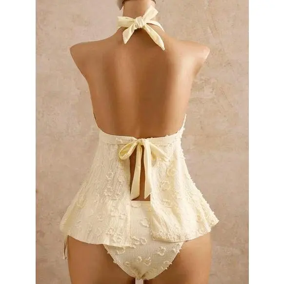 Aleumdr 2 Piece Bikini Set U-Wire Cutout Swimsuit High Waisted Textured 2026 Summer Swimming Clothing Beach Water Sports Tummy Control Swimwear